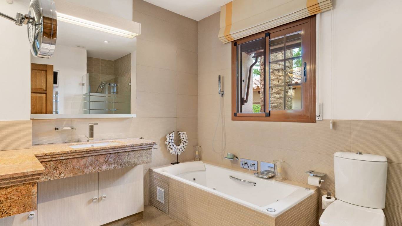 Set on a separate plot of over 5,000 m, this 188 m villa offers a peaceful retreat with a personality all its own. Featuring high ceilings, a fireplace, main living room, sitting area, separate kitchen, two bedrooms, two bathrooms, its own private pool and terrace, its ideal as guest accommodation, a separate residence, or staff housing.