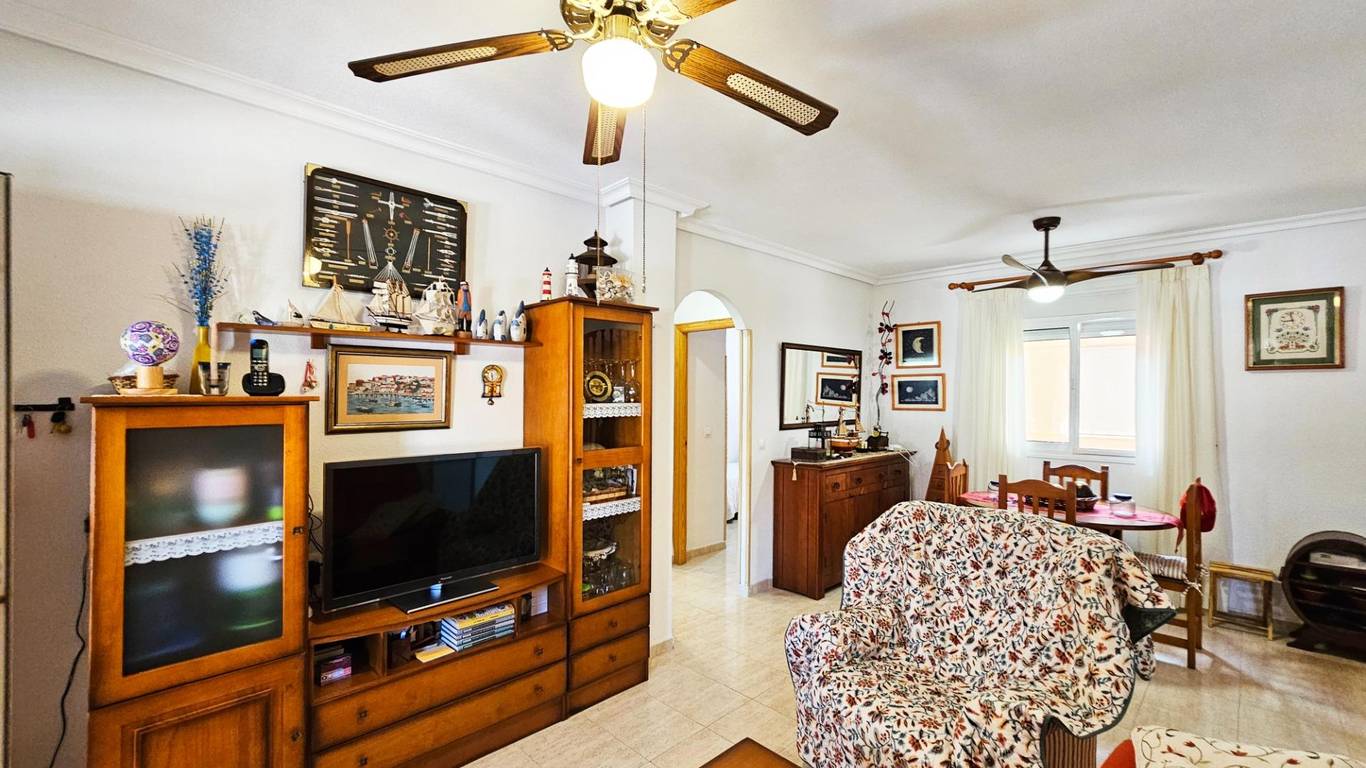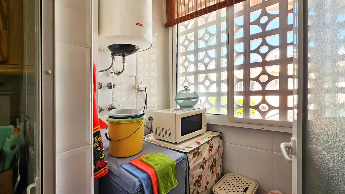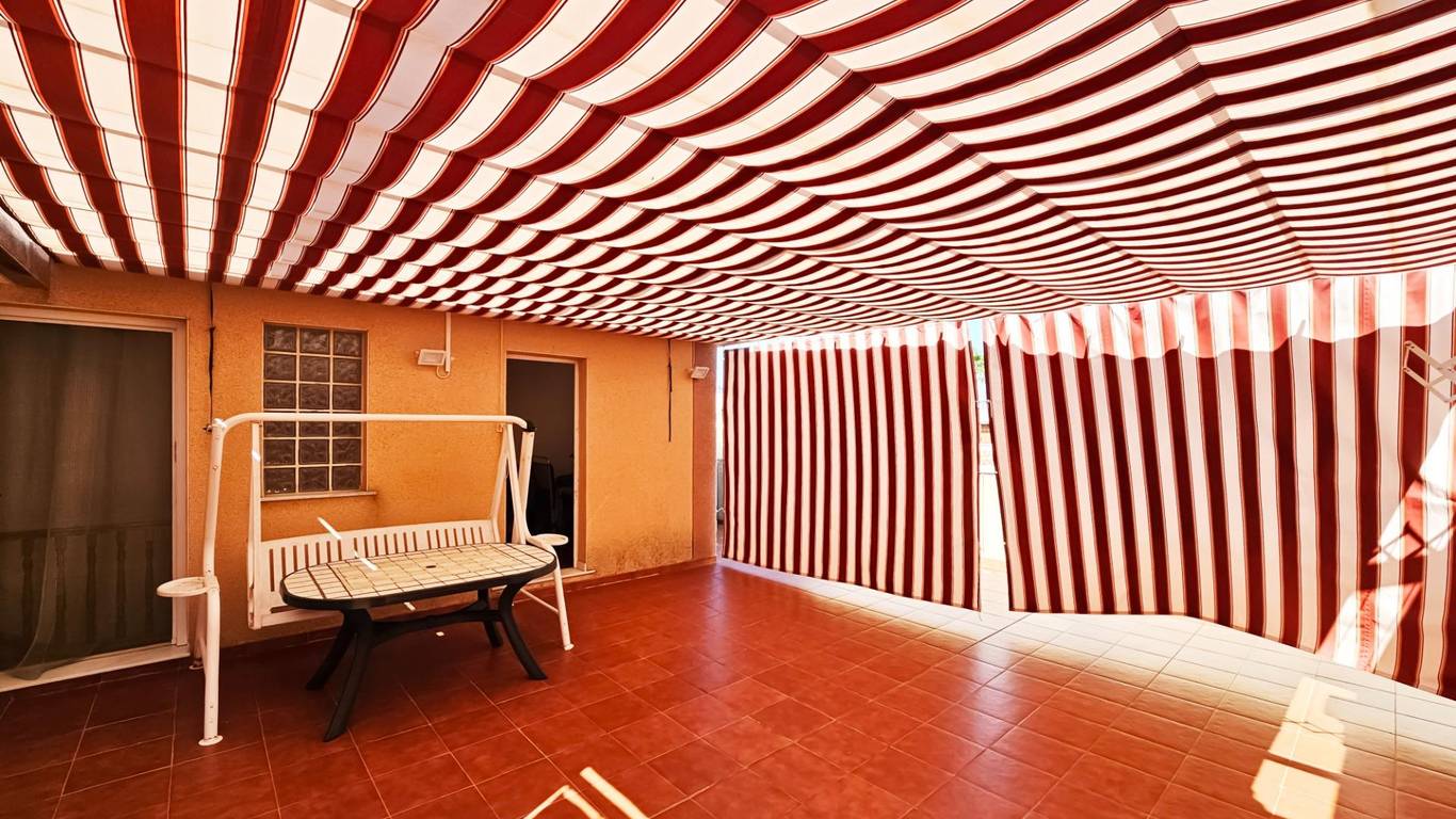 It consists of 2 bedrooms, 2 full bathrooms, one with a bathtub and the other with a shower, a fully equipped open-plan kitchen, a spacious living-dining room, a pantry in the stairwell, a porch, and a solarium. The solarium has awnings that cover 80 of it, a spacious storage room, and a summer shower. This space is very versatile it is ideal for hosting outdoor meals and gatherings to enjoy Alicante's beautiful weather.
