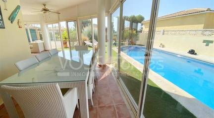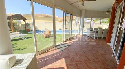 RESERVED 2025 & EXCLUSIVE TO VOSS HOMES - VILLA TULIPAN VH2600 is an impressive, spacious, recently modernised, well maintained 3 bed, 2 bath villa with air con throughout, 8m x4m swimming pool, conservatory, double garage, storage room, jacuzzi plus solar & mains electricity on a private walled and gated garden of just over 600m2 with great views. Walking distance to the amenities Arboleas town with shops, mini supermarkets, restaurants, bars, Saturday street market, doctors, banks, hair dressers, gym etc