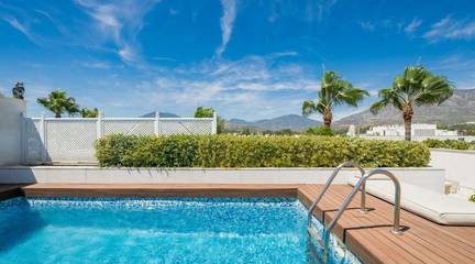 On the upper floor, there is a spectacular solarium with a private pool, dining and lounge areas, all boasting beautiful views of the most emblematic mountain of the Costa del Sol.