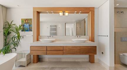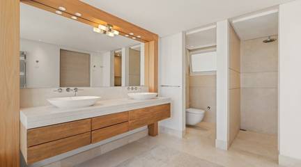 The three bedrooms, all spacious and bright, offer a serene atmosphere. Each has a spa-inspired en-suite bathroom where noble materials and meticulous details create an intimate and elegant retreat.
