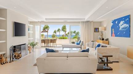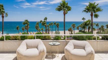 From its privileged beachfront location, this home offers a visual and sensory experience that is hard to match: endless views of the deep blue Mediterranean, Marbellas golden beach, and the majestic silhouette of La Concha, a living postcard that changes with the light throughout the day