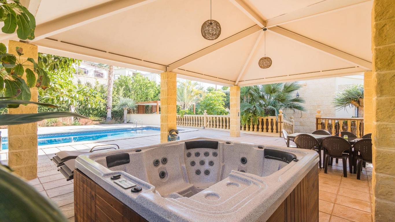 Latout majeur de cette villa est sans aucun doute son environnement extérieur. Entourée de grands arbres et de zones ombragées charmantes, cette propriété vous invite à profiter de la nature tout en préservant votre intimité et votre confort. Le jardin, soigneusement aménagé, crée une atmosphère sereine et accueillante, parfaite pour savourer le climat méditerranéen toute lannée. Lespace piscine est véritablement spectaculaire, avec une grande piscine lumineuse, idéale pour nager ou se rafraîchir durant les journées chaudes. Juste à côté, une zone barbecue entièrement équipée avec deux fours à bois est parfaite pour des repas et événements en plein air. Pour compléter ce cadre de détente, un jacuzzi ajoute une touche de luxe, vous permettant den profiter même en hiver.