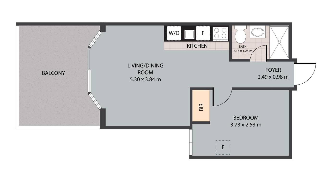 Living room-kitchen, bathroom, one bedroom and terrace.