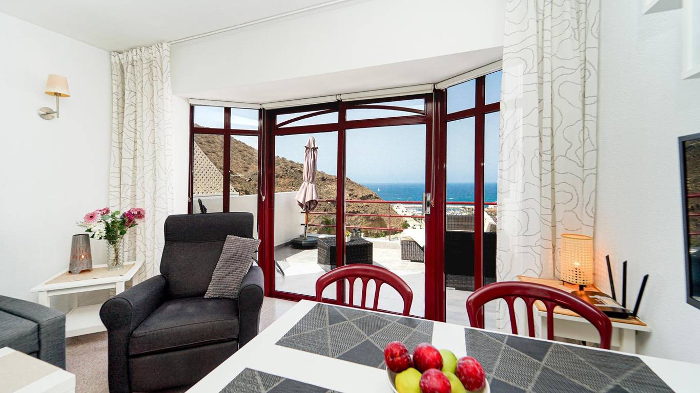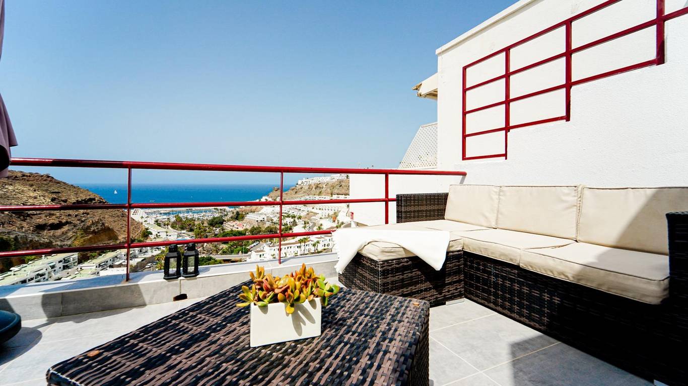 We present to you this charming apartment offering unique views of the sea, the mountains, and the picturesque surroundings of Puerto Rico, right next to Barranco del Agua de la Perra, also known as Nydalen.