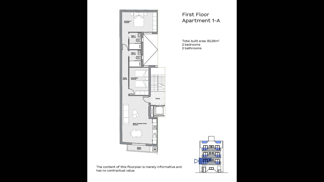 Bedrooms: 2, Bathrooms: 2 Total area: 82 m2 Living area: 70 m2