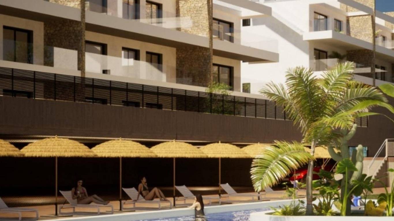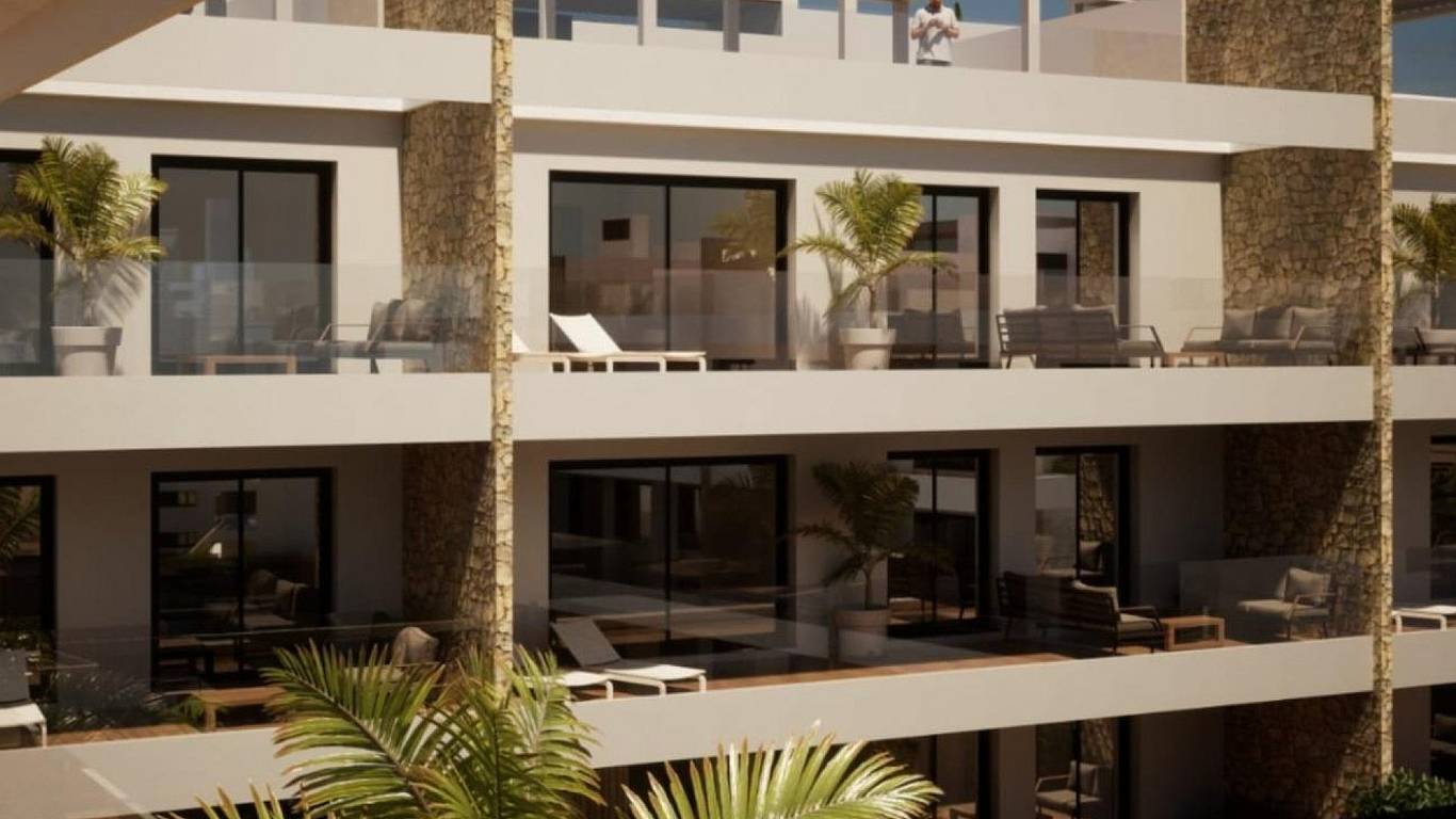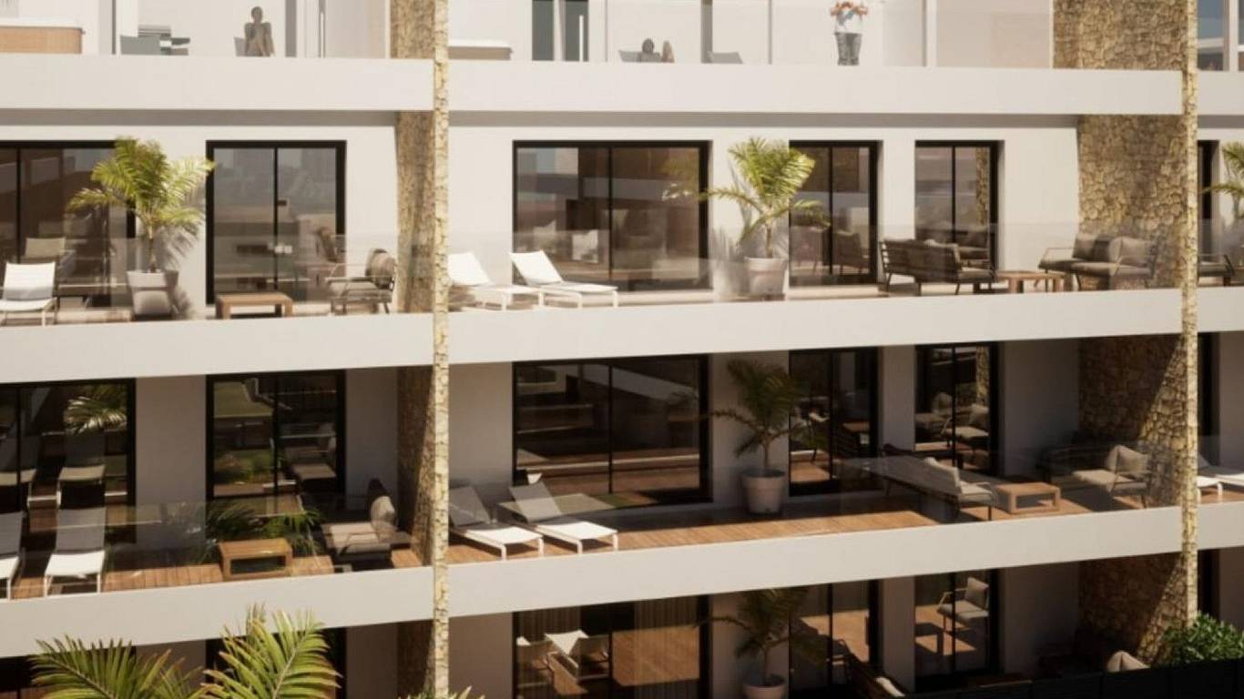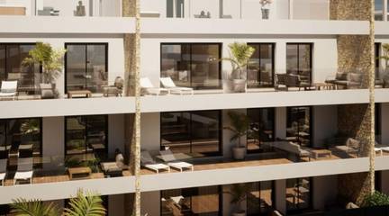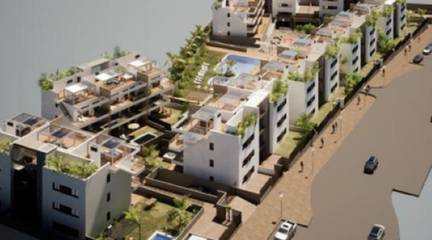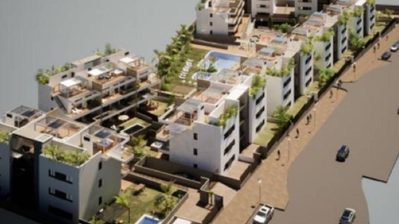 Newly built residential complex with sea views consisting of 9 blocks of 9 apartments each. There are 3 types of homes: 27 penthouses with private solarium, 27 on the first floor with terraces and 27 on the ground floor with private garden.