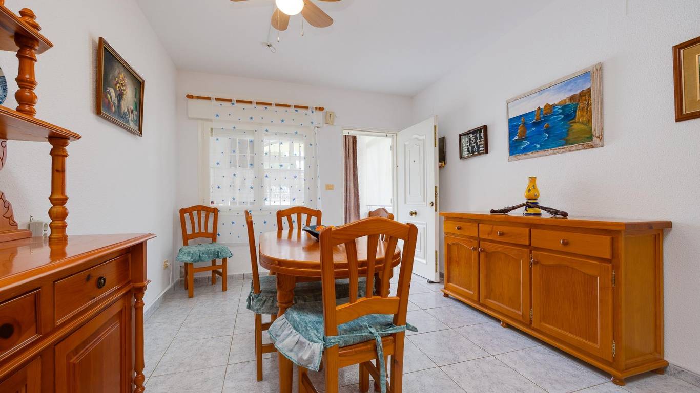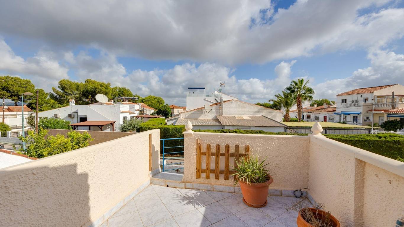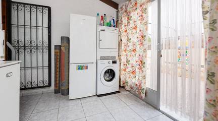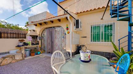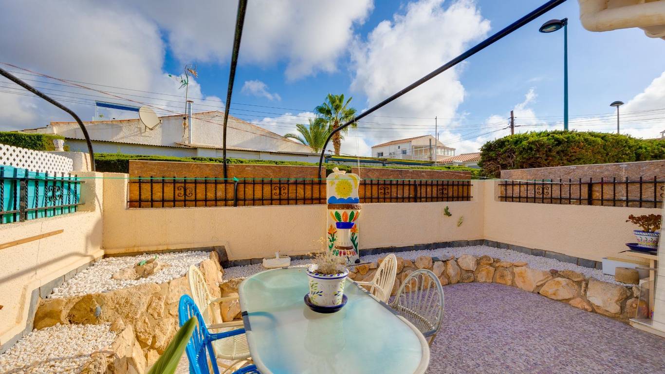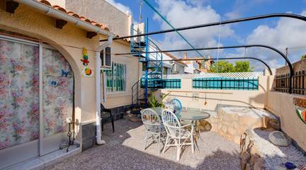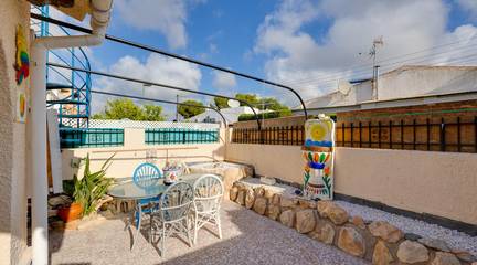 Townhouse with open views located in the Pinar de Campoverde area. The property has a large garden with car entrance, large storage room, terrace, 2 double bedrooms with wardrobes, 2 complete bathrooms and a private solarium. It is fully furnished and ready to move into. Located 20 minutes from the beaches of Orihuela Costa and Torre de la Horadada, in a quiet area surrounded by all amenities. A perfect opportunity for those seeking tranquillity, comfort and proximity to the sea