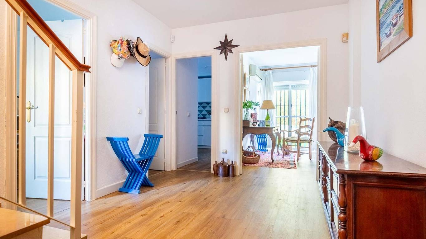En la primera planta, la zona de descanso cuenta con tres dormitorios, uno de ellos en suite con baño propio y acceso directo a una terraza privada, el lugar perfecto para relajarse al aire libre. Un segundo baño completo da servicio al resto de habitaciones. Además, un torreón inunda la casa de luz natural, creando un ambiente cálido y acogedor en cada rincón.