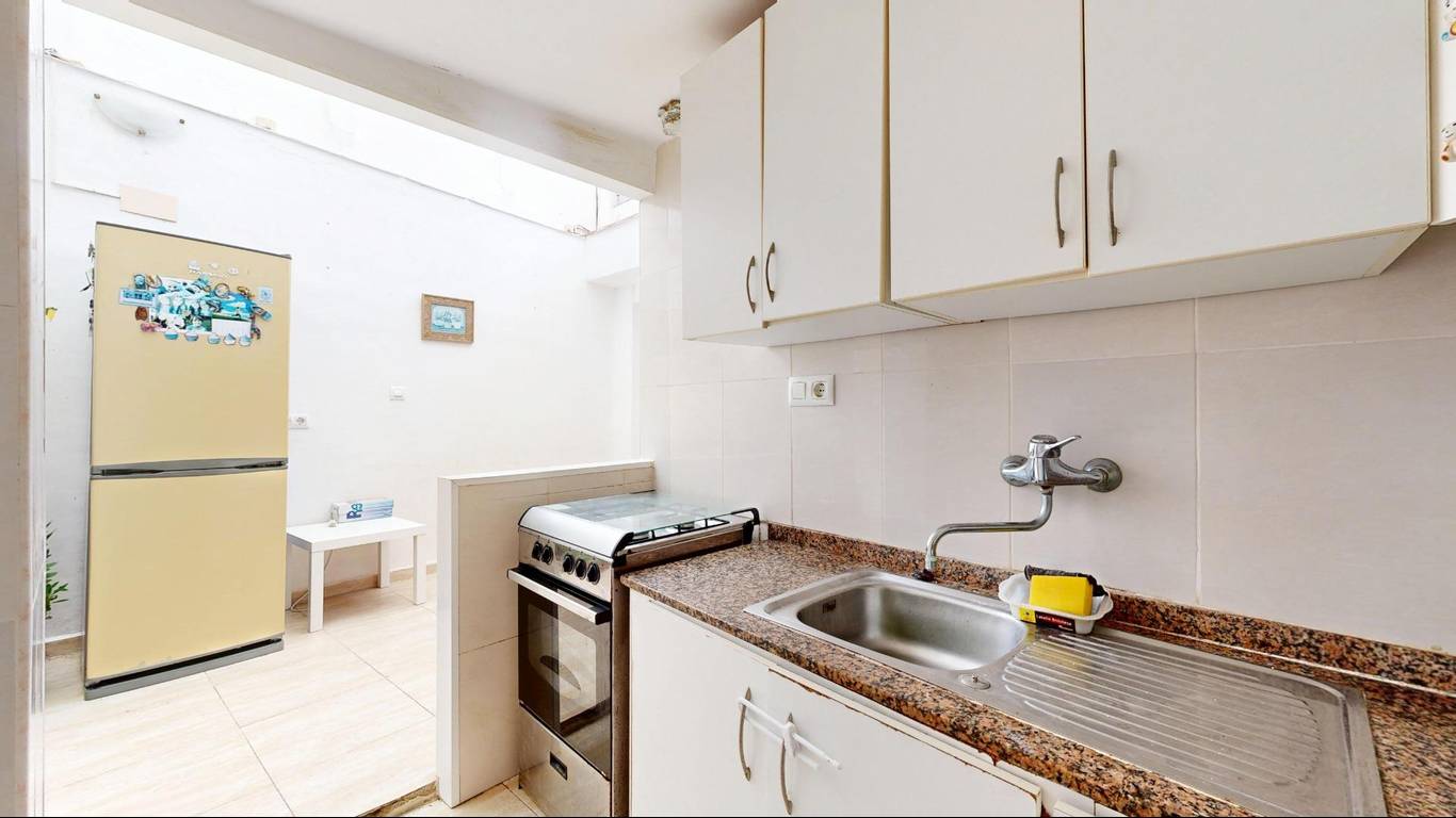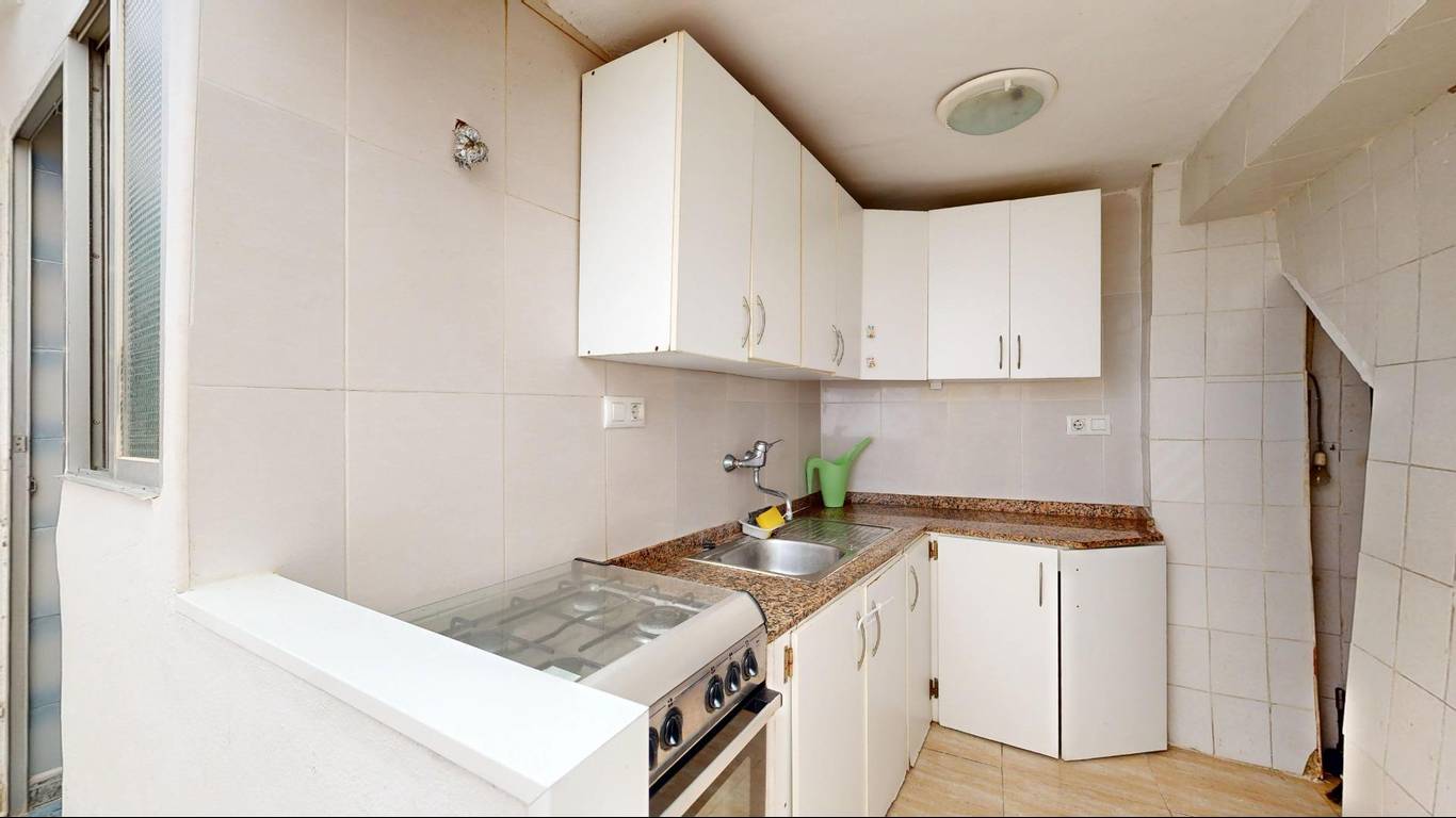 Cocina independiente, con espacio para almacenamiento y preparación.