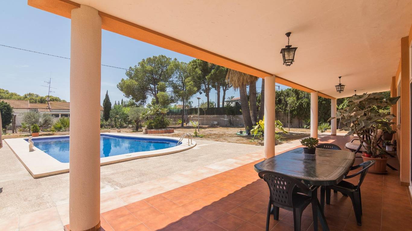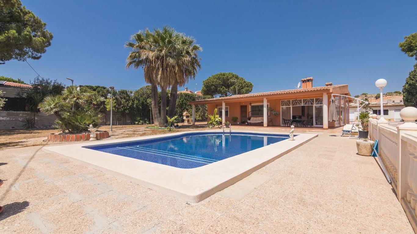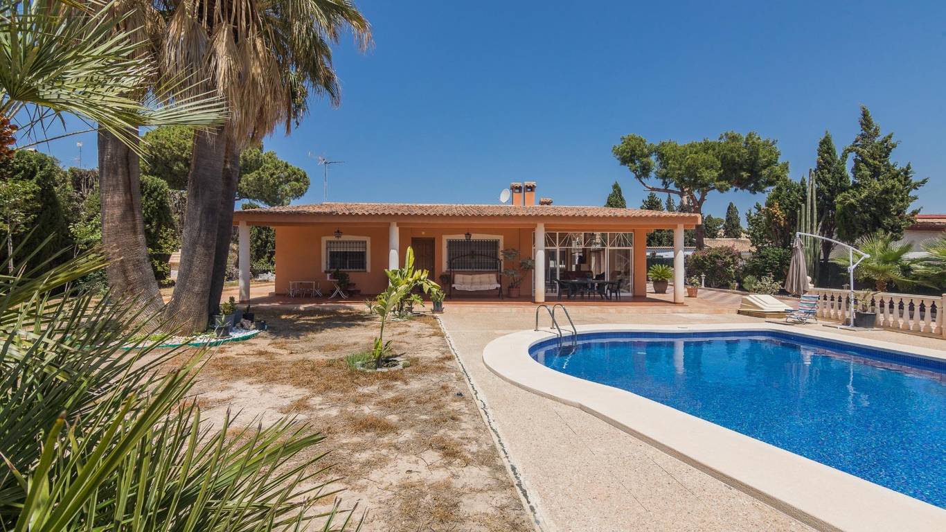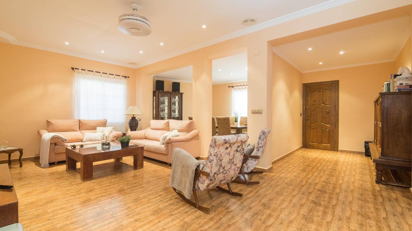 In the exclusive Hípica area, within the Peña de las Águilas residential complex in Elche, lies this magnificent single-story villa, offering comfort, spaciousness, and a privileged environment to enjoy tranquility, without sacrificing proximity to the city. This property has been designed with the comfort of the whole family in mind, with bright, well-distributed rooms creating a cozy and functional atmosphere.