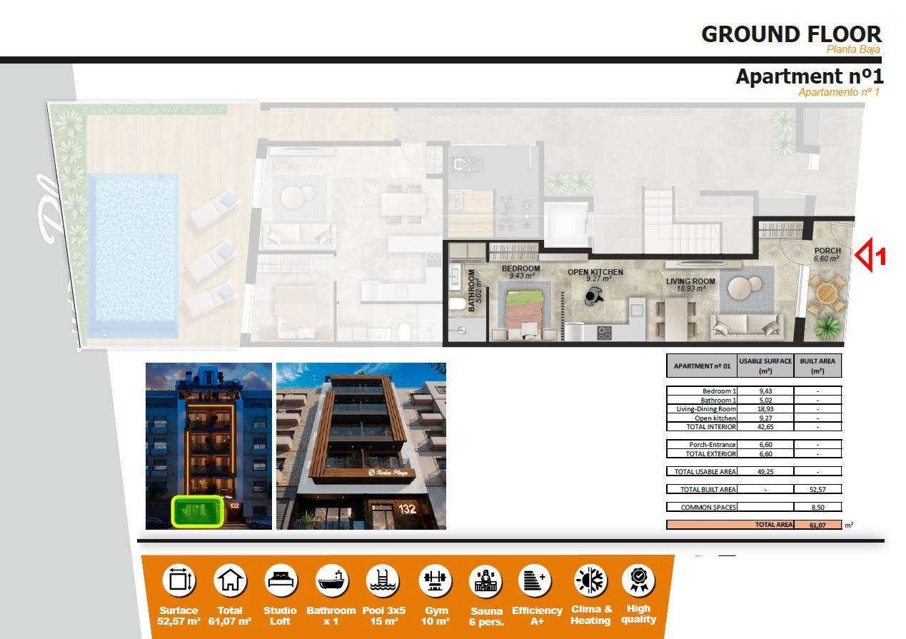 Modern Apartments Just 250m from Playa del Cura in TorreviejaExclusive New Development in the Heart of TorreviejaThis exclusive residential project of 12 modern apartments is located just 250 meters from Playa del Cura, one of the most popular beaches in Torrevieja. Designed with a perfect balance of elegance, functionality, and Mediterranean lifestyle, the building offers a variety of layouts with 1 or 2 bedrooms, including apartments with terraces and penthouses with private solariums. Its central location provides easy access to shops, restaurants, leisure areas, and all essential services, while still maintaining a sense of comfort and tranquility.Premium Amenities for a Modern LifestyleThe development includes 130 m of communal areas designed for relaxation and entertainment. Residents can enjoy:Swimming pool on the ground floor with a childrens areaGym and saunaRooftop solarium with chill-out areas and lush vegetationEvery apartment is built with high-quality materials and finishes, ensuring both comfort and durability. Features include:Fully furnished bathrooms with shower screensPre-installation of ducted air conditioningHigh-quality PVC exterior carpentry with solar control glassReinforced security entrance doorThe Vibrant Life of TorreviejaTorrevieja is a lively coastal city on the Costa Blanca, renowned for its year-round cultural and recreational activities. With over 300 days of sunshine annually and a mild Mediterranean climate, the area is ideal for beach lovers, outdoor enthusiasts, and those seeking a vibrant lifestyle. The city also offers a wide range of services, international cuisine, marinas, and a lively promenade.Prime Location with Excellent ConnectivityThe development is strategically located with easy access to key points of interest:Alicante Airport: 45 kmGolf Courses: 710 kmZenia Boulevard Shopping Center: 8 kmTorrevieja Marina and Port: 2 kmYour Perfect Home by the SeaWhether you are looking for a permanent residence, a holiday home, or a property with rental potential, these modern apartments in Torrevieja offer an excellent opportunity to invest in the Costa Blanca lifestyle.Contact us today to arrange a visit and secure your modern apartment just steps from Playa del Cura.