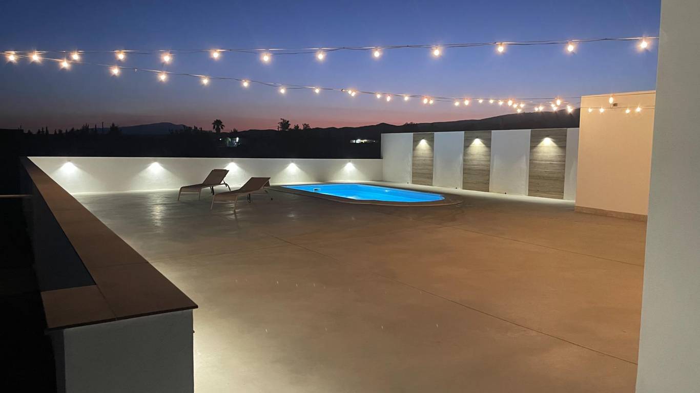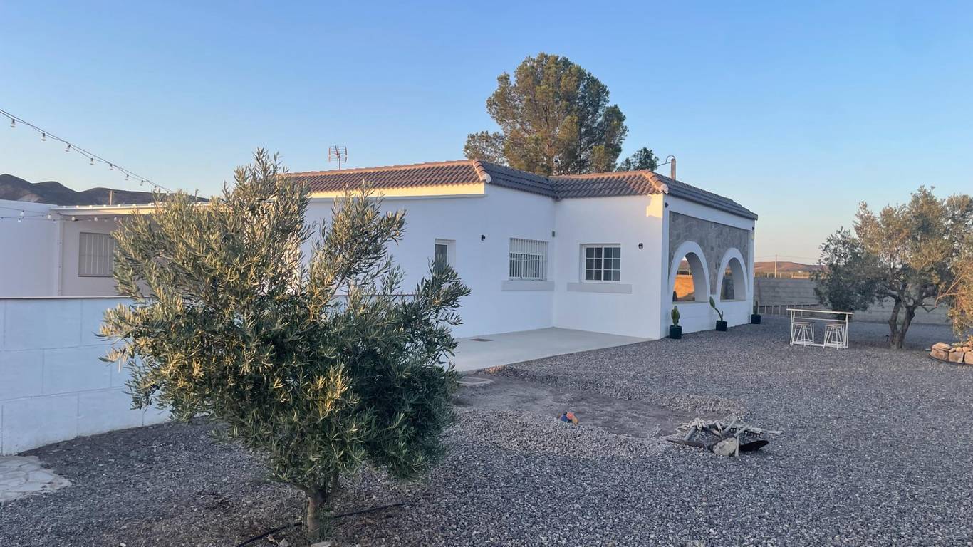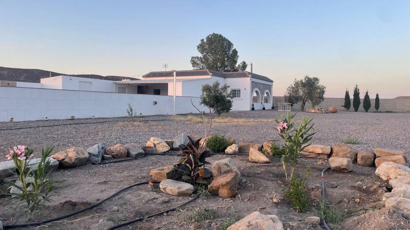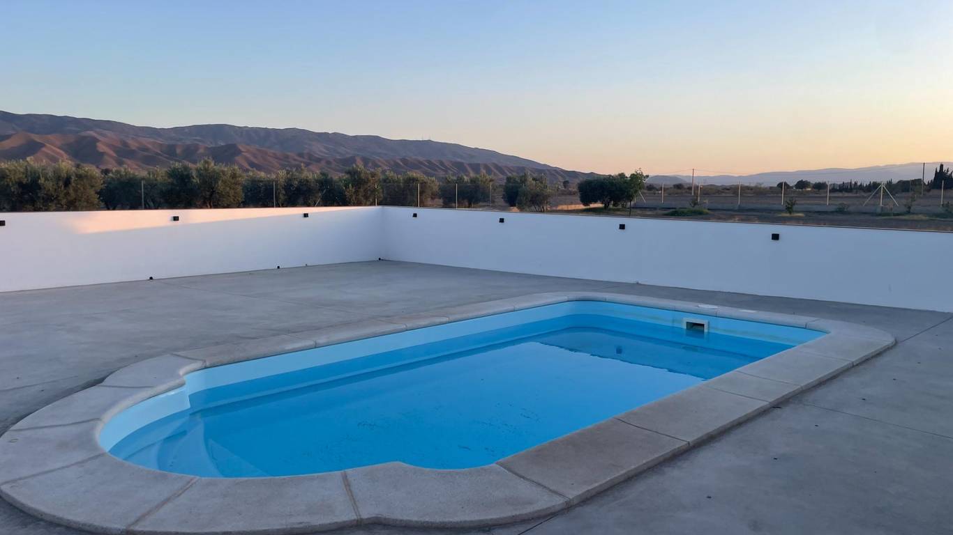 Imagine living surrounded by incomparable nature and tranquility, where every sunrise and sunset paint the sky with unique colors. Just 5 kilometers from the town of Tabernas, this country house offers the perfect combination of seclusion and convenience. We present this exceptional country house in Tabernas, Almería, known as Paraje por Piezas la Temprana y del Fraile. A property that offers an idyllic lifestyle, with an area of 24,934 square meters of cultivated land, where you will find 400 olive trees and a variety of fruit trees such as orange, lemon, jujube, and pomegranate trees, all with automated irrigation for your convenience. The house is simply exceptional, with an entrance through a welcoming porch that invites you to discover its interior. It has 2 bedrooms, 1 bathroom, a practical basement, and a utility area. The heart of the house is its living room and kitchen with an American-style fireplace, a perfect space for enjoyment and conviviality. Outside, you'll find a barbecue area with a porch, a swimming pool, ideal for outdoor gatherings, as well as a toilet, shower, storage room, and a refreshing pool for hot days. The property comes fully furnished with top-of-the-line, semi-new furniture, ensuring comfort and style from day one. Furthermore, the living area is fenced around the perimeter, offering privacy and security. Don't miss the opportunity to make your dream of living in a privileged natural setting, without sacrificing comfort, a reality. This farmhouse is more than a home it's a lifestyle