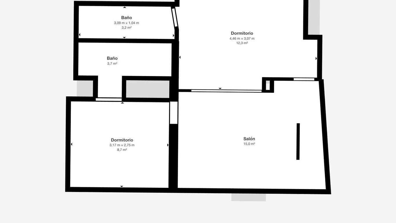 2 habitaciones dobles (antes 3) con posibilidad de volver a hacer la tercera fácilmente.