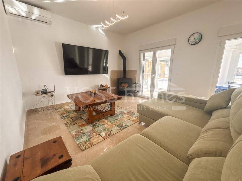NEW & EXCLUSIVE LISTING TO VOSS HOMES - VH2628 Villa Maida is a spacious, recently totally refurbished & modernised 3 bed, 2 bath Villa of 121m2 plus glazed conservatory with large wooden chalet currently used as an guest bedroom, impressive 8m x 4m heated swimming pool plus additional jacuzzi section, mains & solar electricity, separate chalet (4th bedroom), carport, 2 sheds & H&C aircon on a low maintenance, fenced garden of 2,815m2.