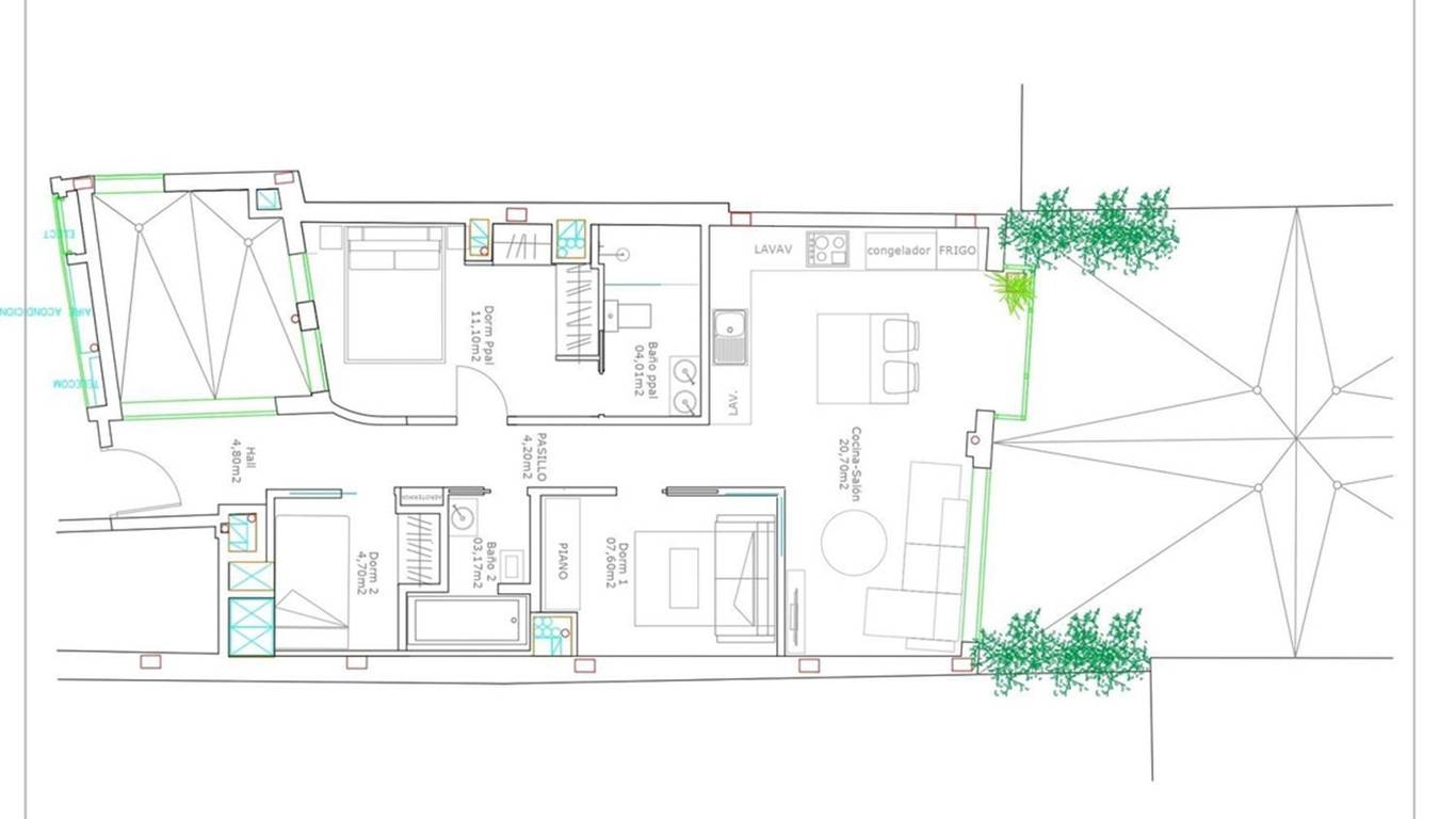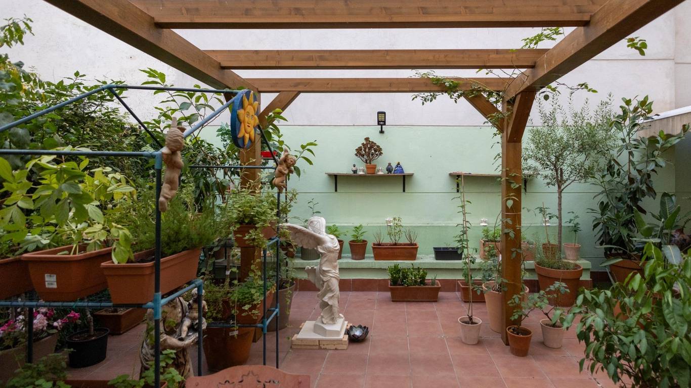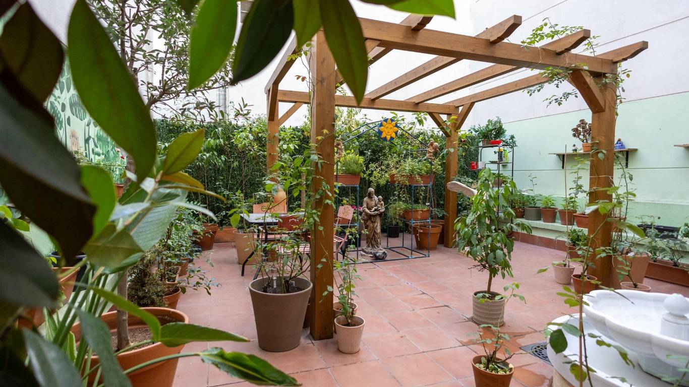 Desde el salón, unas grandes cristaleras conducen a la joya de la vivienda: una espectacular terraza de 60 m en el patio interior, un oasis privado con pérgola de madera y vegetación. Este espacio exterior, soleado por las tardes, silencioso y con una excelente ventilación, es ideal para disfrutar de...quedamos atentos a tu historia... o simplemente desconectar del ritmo urbano.