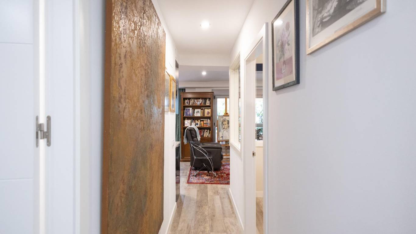 La vivienda comienza con un elegante vestíbulo que da acceso a un luminoso dormitorio principal tipo suite, con vestidor, baño privado y salida directa a un patio íntimo. Un segundo dormitorio y un versátil despacho (ideal para trabajar, estudiar o recibir invitados) completan la zona privada. Además, dispone de un tercer dormitorio con paredes de cristal que aporta modernidad y amplitud, acompañado de un baño completo adicional.