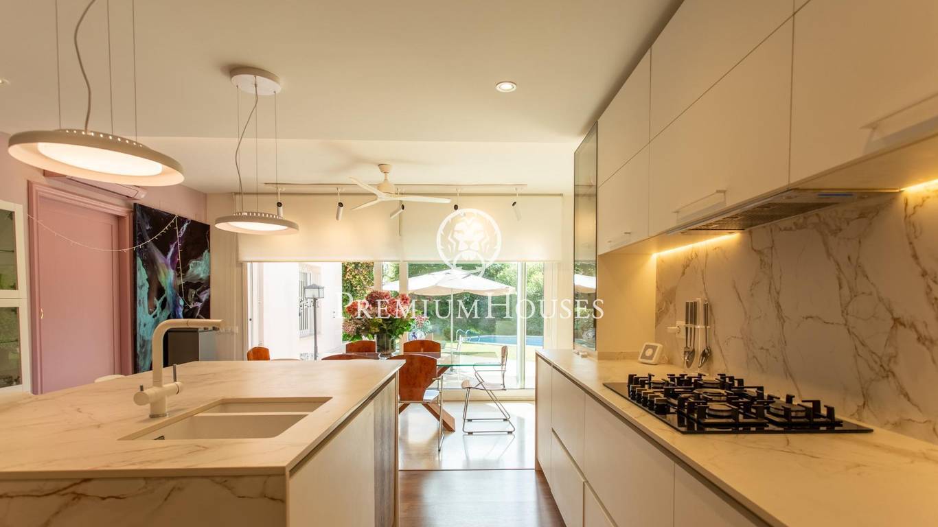 The property has its own water well, rainwater collection tank, alarm system with security cameras and motorised access gate. Its location is unbeatable: just a five-minute walk from the beach, the marina and the train station, which connects directly to the centre of Barcelona.