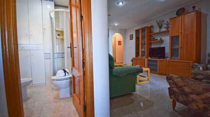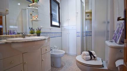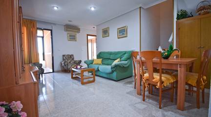 El apartamento cuenta con tres amplias habitaciones dobles que ofrecen comodidad y privacidad además dispone de un baño completo y un aseo adicional para mayor funcionalidad. Ubicado a solo cien metros del mar Mediterráneo , Calas de Santiago Bernabeu, podrás disfrutar fácilmente tanto de las playas como del entorno urbano.