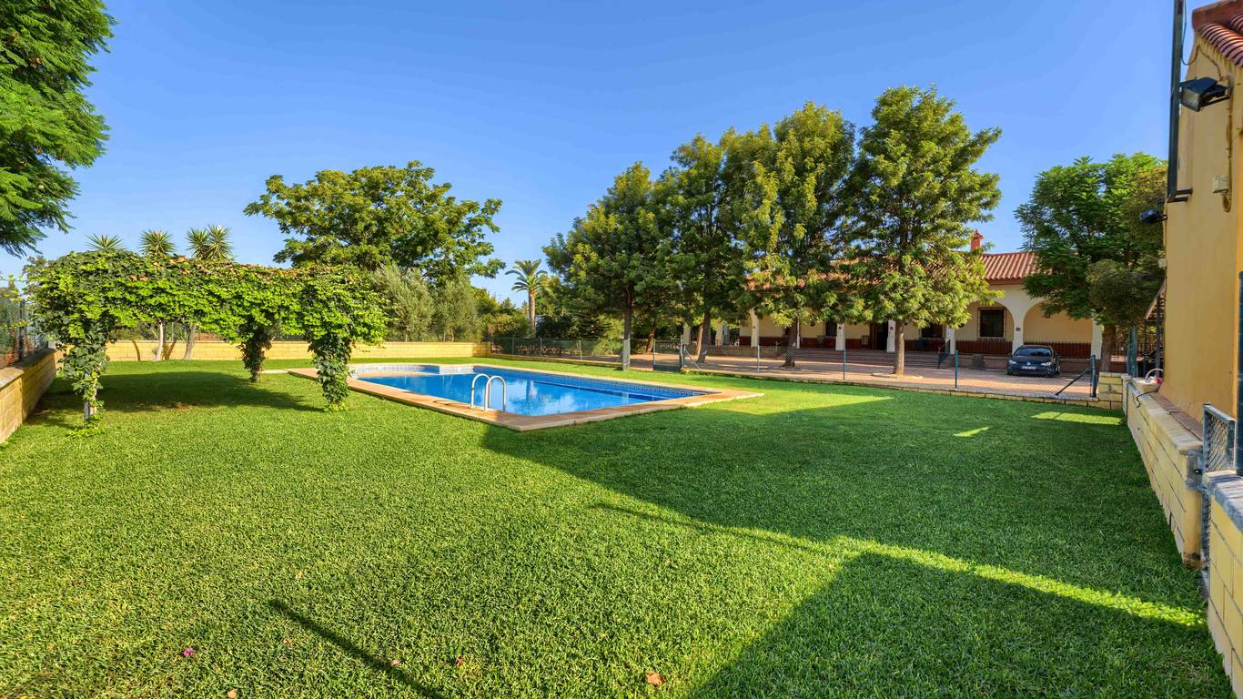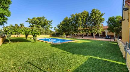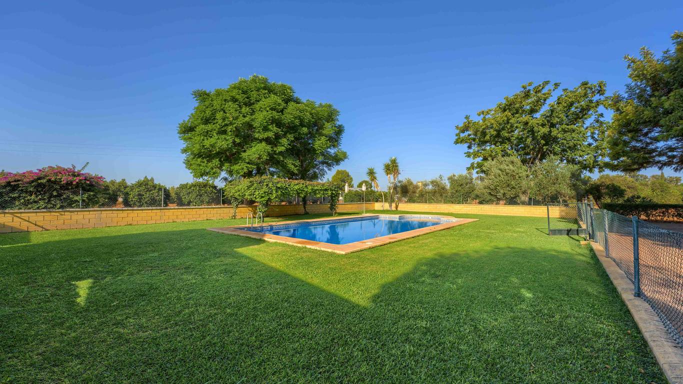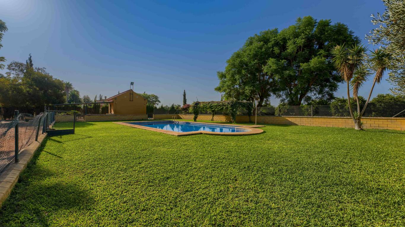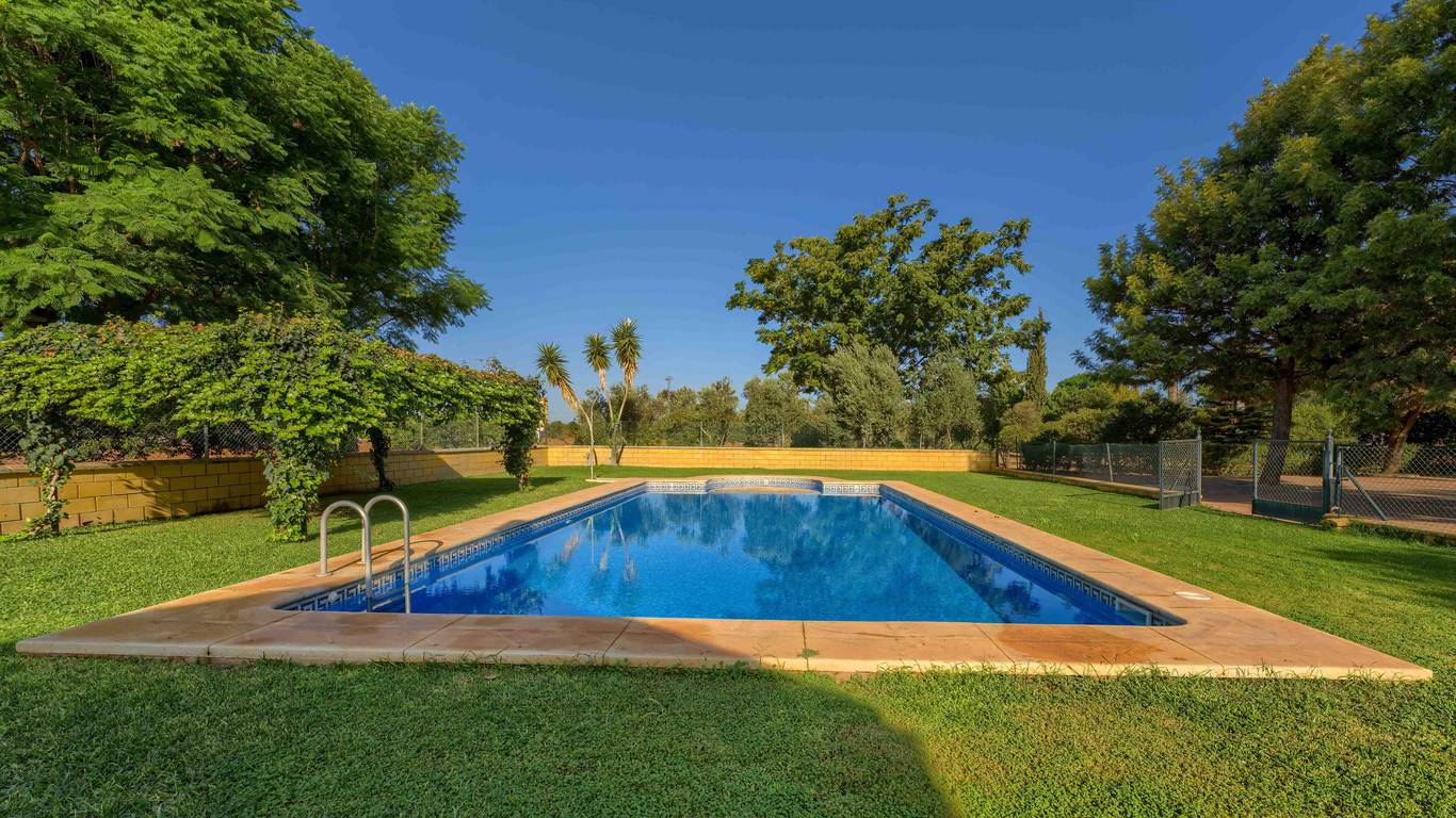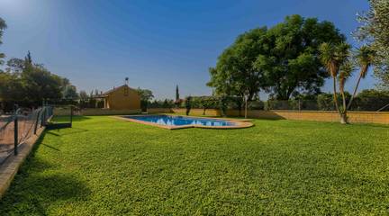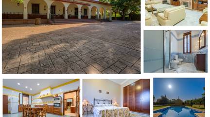 The Dream Estate in Mairena del AlcorImagine a luxury estate located just 300 meters from the charming village of Mairena del Alcor, on the Brenes road. This place is a true haven of peace, where nature and comfort merge in an idyllic and exclusive setting.The 9,079 m plot is a paradise in itself. From the moment you cross the automatic gate of the estate, you are greeted by a sprawling grounds that combine the beauty of the Andalusian landscape with the most modern amenities. The automatic irrigation system, fed by a private well with a hydrographic license, keeps the vegetation lush and healthy year-round. You'll stroll through a grove of majestic olive trees and fragrant orange trees, and you'll have space to grow your own produce on the farmland.At the heart of the estate stands an imposing, single-story house measuring 289 m. Its architecture combines tradition with elegant design, highlighting a porch that wraps around the front and sides, ideal for enjoying summer evenings.A Luxurious and Comfortable InteriorUpon entering the house, you'll be amazed by the spaciousness and light of its rooms. The home features:Six large bedrooms, all with built-in wardrobes, providing ample space for the whole family to relax or comfortably accommodate guests. The double-glazed, wood-lacquered aluminum windows ensure perfect insulation.An elegant entrance hall welcomes you into a luxurious home.Two living rooms, one of them enormous, perfect for social or family gatherings, and featuring a fireplace that provides warmth in the colder months.The other, smaller living room, attached to the kitchen, is for everyday use.A gigantic kitchen, where you can unleash your passion for gastronomy, with a dining table in the center, ideal for family meals.The kitchen also has a pantry ideal for storing utensils.From the kitchen, we access the basement through a door, which adds extra space and offers endless possibilities, such as a wine cellar, a game room, a gym, or even a small home theater.Two full bathrooms with showers in the main house, one of them located in a separate room.A laundry room for added convenience, with a pantry, dryer, and electric water heater, and with access to the back of the house.Ceiling-mounted air conditioning in each room, with individual use for personalized comfort.An Exterior Made for Enjoyment:The estate's exterior has been designed for leisure and entertainment, creating the atmosphere of a private resort:A refreshing pool with its water treatment room is the center of attention. Natural shade in the surrounding lawn offers a cool refuge from the sun.A 197 m warehouse offers incredible versatility, and can be used as a garage for several vehicles, a workshop, even as an event space, or, if you love horses, as a stable.A storage room guarantees extra space to store your belongings.The barbecue area is the ideal place to host outdoor barbecues with friends and family, and features an additional bathroom with a shower for the convenience of guests.This estate is not just a property, it's a living experience. A place where luxury meets tranquility, and where every corner is designed for maximum enjoyment.We inform our clients that the sale price does not include the following: real estate agency fees, taxes (such as Property Transfer Tax, VAT, or AJD, if applicable), and other purchase expenses (property registry fees, notary fees, agency fees, or any financing costs). The D.I.A. document is available to the consumer in accordance with Decree 218/2005 of the Andalusian Regional Government.