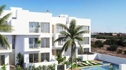 New Build Residential Complex in Los Alcázares on the Frontline of Serena GolfExclusive Living on the Costa CálidaDiscover this new residential development in Los Alcázares, perfectly located on the frontline of Serena Golf and just 1.3 km from the beaches of the Mar Menor. Nestled in the heart of the Costa Cálida, this project combines modern architecture, comfort, and exceptional surroundings. With excellent road connections, the complex is only 30 km from Murcia Airport (25 minutes) and 90 km from Alicante Airport (55 minutes), offering easy access to Cartagena, Murcia, and the Costa Blanca.Contemporary Homes with Exceptional DesignThe residential complex includes 18 elegant apartments and 7 exclusive villas, each designed to maximize space, light, and functionality. Residents will enjoy breathtaking views of the golf course and, from the upper floors, the sparkling waters of the Mar Menor.Choose from:Apartments with 2 or 3 bedrooms and 2 bathrooms, all with dual orientation and two terraces for all-day sunlight.Ground-floor apartments with private gardens.Middle-floor units with large terraces.Penthouses with two terraces, private solarium, and panoramic views.Detached villas on the frontline of golf, with 3 bedrooms, 2 bathrooms, basement, solarium, and private pool.Premium Features and AmenitiesEvery home is equipped with high-quality finishes and modern comforts, including:Parking space and storage roomAerothermal hot water systemPre-installed ducted air conditioningElectric shutters and full lighting packageFully fitted bathrooms with furniture and shower screensCommunal swimming pool and landscaped gardensElevator in the apartment blocksPerfect Location for Golf and Beach LoversSituated in a privileged enclave, the development is surrounded by the peaceful greenery of Serena Golf and lies just a short walk from the warm, shallow waters of the Mar Menor. This unique area offers year-round opportunities for swimming, sailing, paddleboarding, and other water sports, making it ideal for both relaxation and activity.Key distances:Beach (Mar Menor): 1.3 kmSerena Golf: Adjacent to the complexLos Alcázares town center: 2 kmCartagena: 22 kmMurcia city: 40 kmMurcia Airport: 30 km (25 minutes)Alicante Airport: 90 km (55 minutes)Secure Your Mediterranean LifestyleThis development in Los Alcázares offers the perfect combination of beach, golf, and modern living. Whether as a permanent residence, holiday retreat, or investment, it provides everything needed for an authentic Mediterranean lifestyle.Contact us today to arrange a visit and secure your new home on the Costa Cálida.