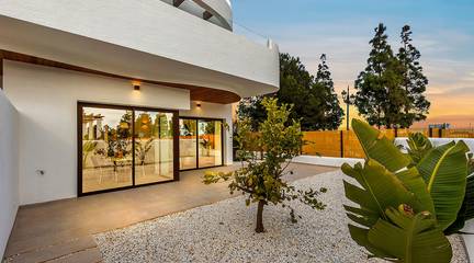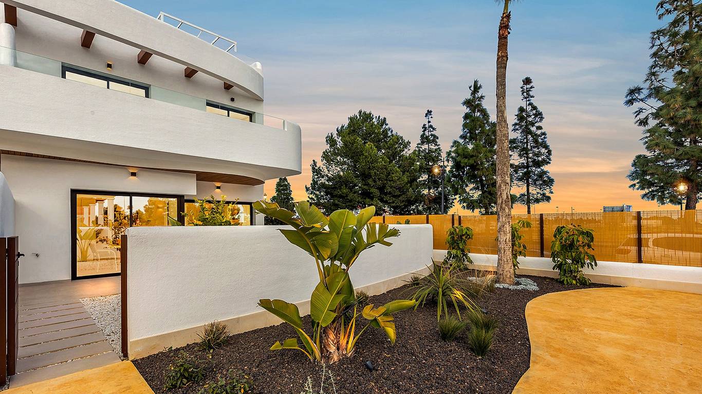 There are ground-floor apartments with a private terrace, first-floor apartments with a balcony, and penthouses with a balcony and a large private solarium.