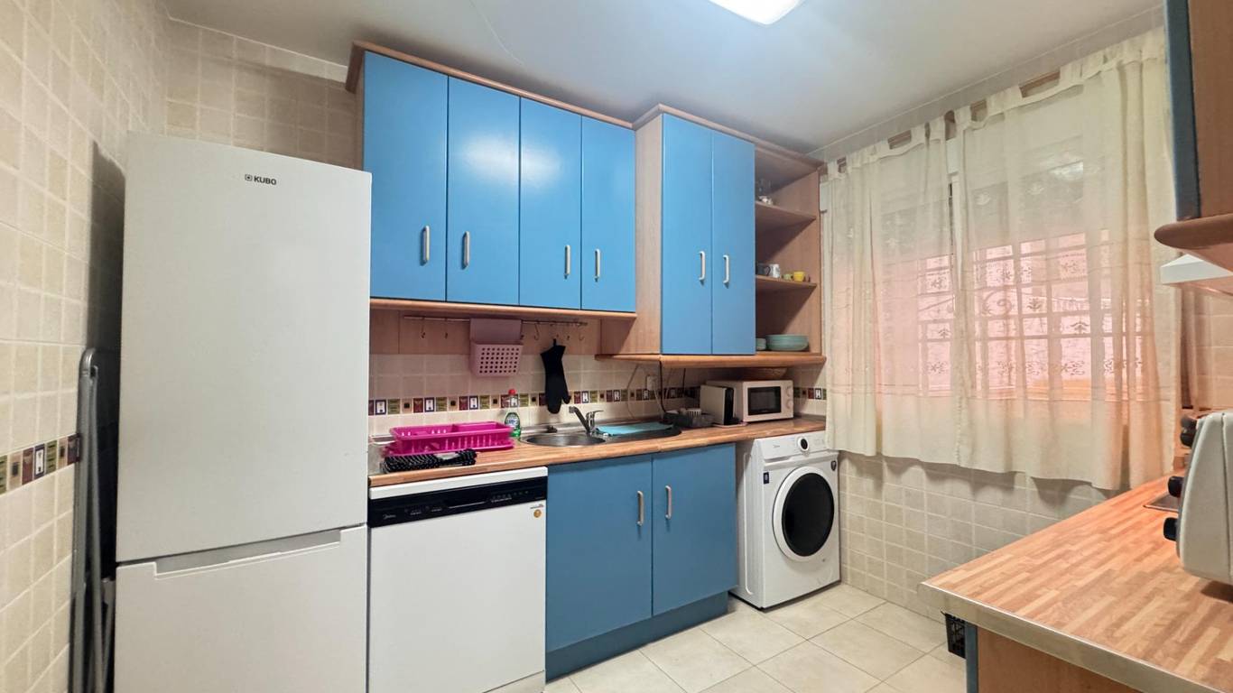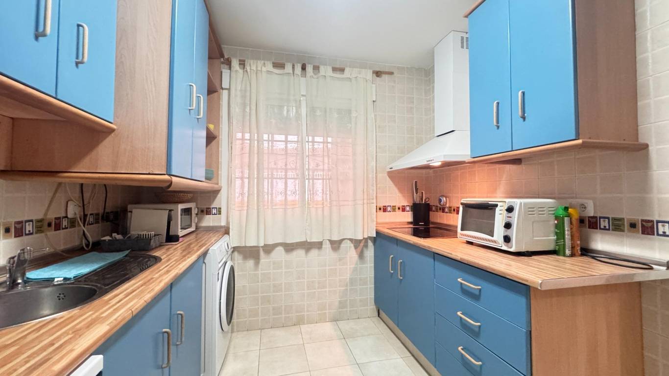 La cocina, independiente y funcional, está totalmente amueblada y equipada con electrodomésticos, lista para que empieces a disfrutarla desde el primer día. El dormitorio doble destaca por su amplitud y su gran armario empotrado, que aporta orden y comodidad. Además, el cuarto de baño completo cuenta con bañera, pensado para esos momentos de descanso después de un día de playa.