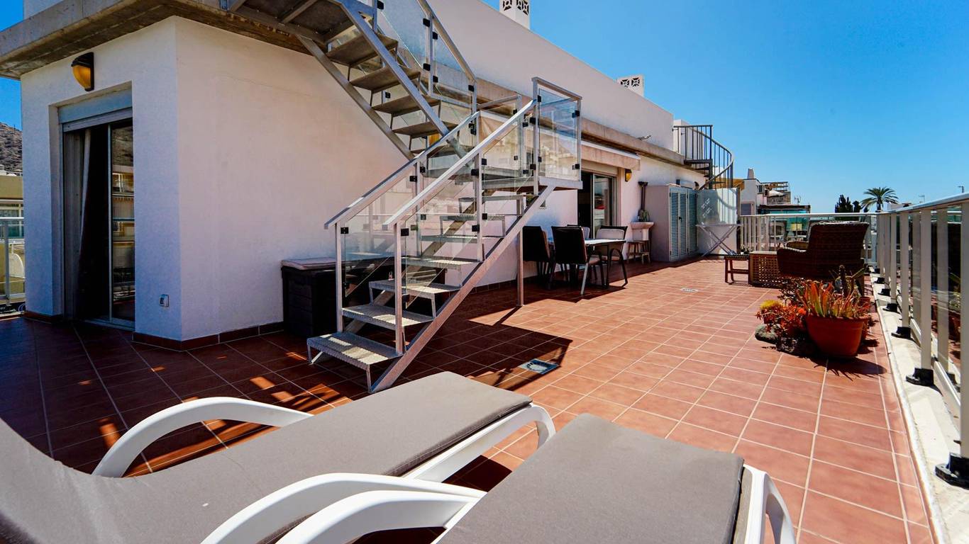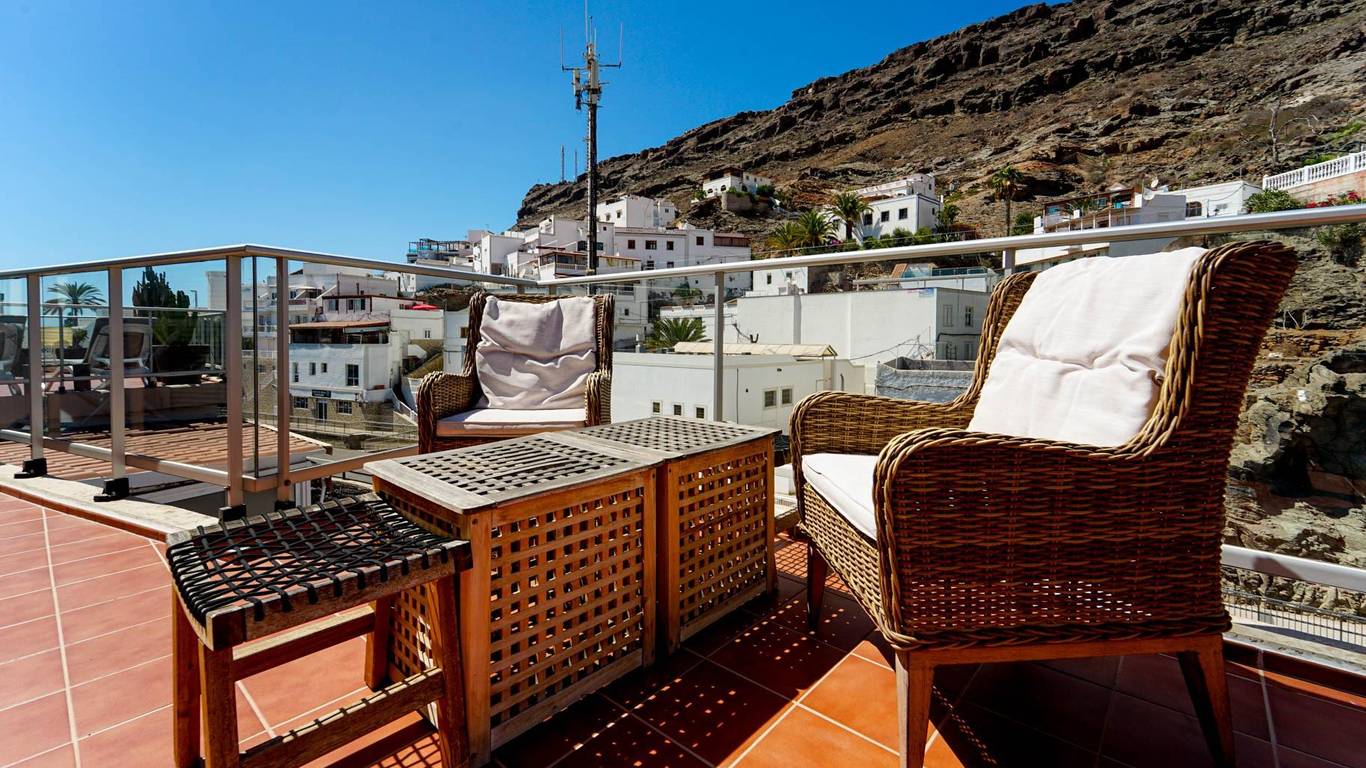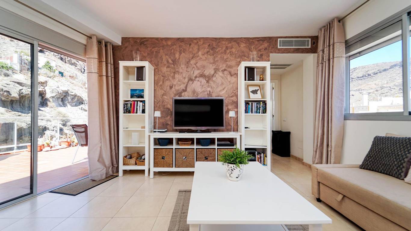 We present a unique property in an unbeatable location, just a few metres from Mogán Beach and next to the canal and marina. This exclusive corner penthouse stands out for its spectacular outdoor terrace and a spacious walkable rooftop with many possibilities. Together, both outdoor areas offer over 100 m of private space, a rare privilege in the area that allows you to enjoy the extraordinary climate of southern Gran Canaria to the fullest.