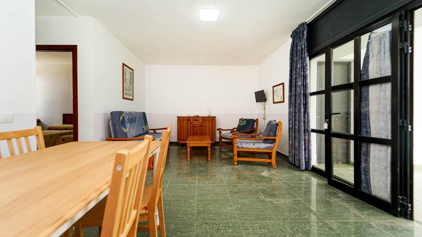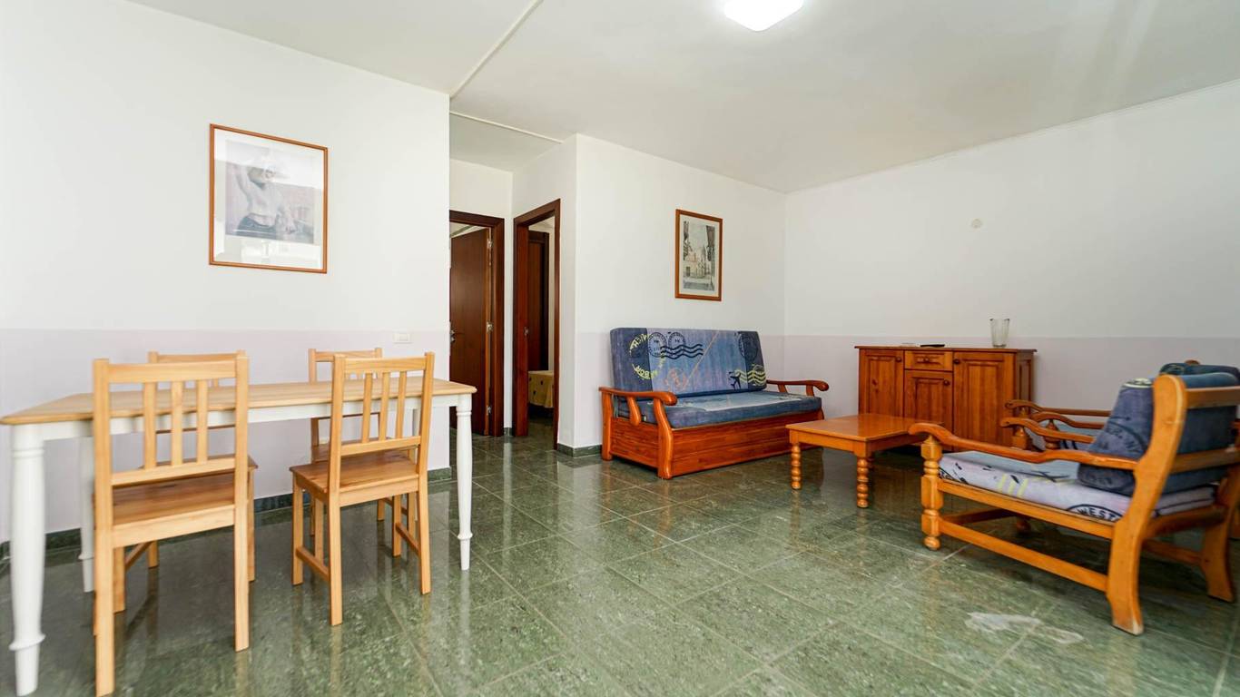 The property features two spacious bedrooms, a bright living room with air conditioning, and a large terrace, ideal for enjoying the warm climate all year round. Its location near the entrance of the complex allows easy access without the need for stairs.