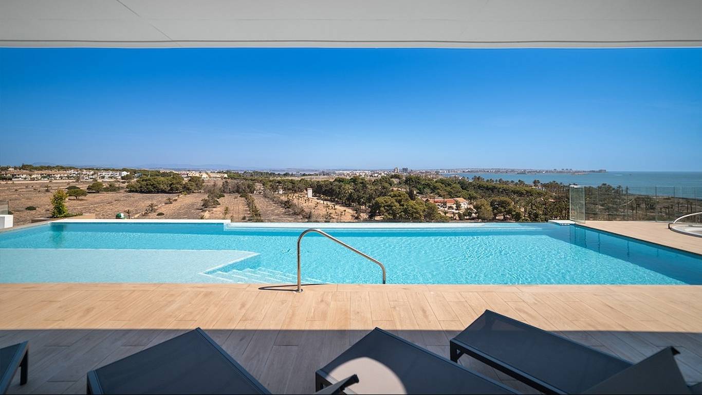 Apartment with garden provided with 3 Bedrooms and 2 Bathrooms, infinity swimming pool and optional underground parking & storage room.