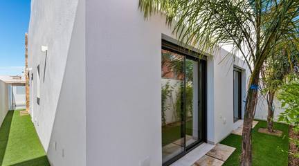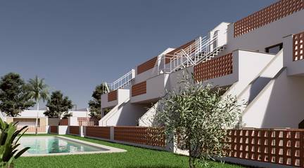 Exclusive New Build Residences in Pilar de la Horadada, Costa BlancaModern Mediterranean Living Near the BeachDiscover this exclusive new development of just 8 contemporary homes in Pilar de la Horadada, located within walking distance to the town center and only 3.5 km from the beautiful beaches of Torre de la Horadada and Mil Palmeras. This charming coastal town, situated in the southernmost part of the Costa Blanca, is known for its relaxed atmosphere, traditional Spanish charm, and excellent amenities. Residents enjoy a wide range of services including supermarkets, restaurants, shops, and leisure areas, all just a few minutes away.Elegant Homes Designed for Comfort and StyleThe development offers a selection of ground-floor apartments with front terraces and private gardens, or top-floor apartments featuring spacious terraces and private solariums. Each home includes 3 bedrooms and 2 bathrooms, one of them ensuite, designed with modern lines and high-quality finishes to ensure maximum comfort.The residential complex features a communal swimming pool surrounded by landscaped gardens, creating an inviting and peaceful environment for relaxation and leisure. Every property also includes a private parking space and a storage room.High-Quality Finishes and Premium FeaturesThese new build homes have been constructed with top-quality materials and attention to detail. Key specifications include:Aluminum exterior carpentry in anthracite grey with thermal break (CORTIZO brand)Quadruple glazing with solar protectionElectric aluminum shutters in bedroomsSuspended toilets and walk-in showers with integrated flooringBathroom furniture with LED backlit mirrors and electric towel railsFully fitted kitchen equipped with Miele appliancesLED interior and exterior lighting throughout the homeComplete air conditioning installation via ducts (Fujitsu system)Perfect Location on the Costa BlancaPilar de la Horadada is ideally situated for both permanent living and holidays. The town combines the best of traditional Spanish life with modern infrastructure and proximity to the sea.Main distances:Beaches of Torre de la Horadada and Mil Palmeras: 3.5 kmLo Romero Golf Course: 6 kmMurcia-Corvera Airport: 40 kmAlicante Airport: 55 kmMarina of San Pedro del Pinatar: 10 kmYour New Home in the Sun AwaitsEnjoy the perfect combination of design, comfort, and Mediterranean lifestyle in these new build homes in Pilar de la Horadada. Whether you are looking for a holiday retreat or a year-round residence, this exclusive project offers the ideal balance between quality, location, and modern living.Contact us today for more information or to arrange a visit.