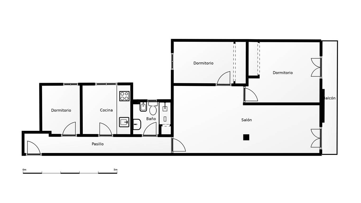 - Tres dormitorios, dos de ellos individuales. Principal con balcón a la calle y gran armario empotrado.