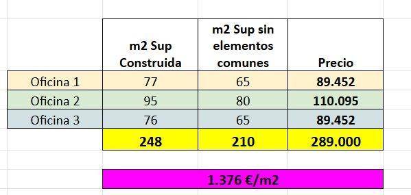 Se vende el conjunto de las 3 oficinas con tres referencias catastrales en la misma planta con un total de 210 m2 útiles a 289.000