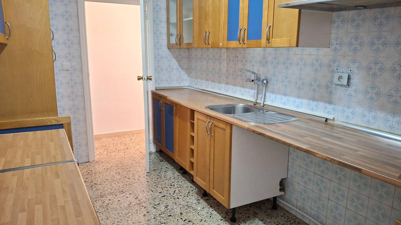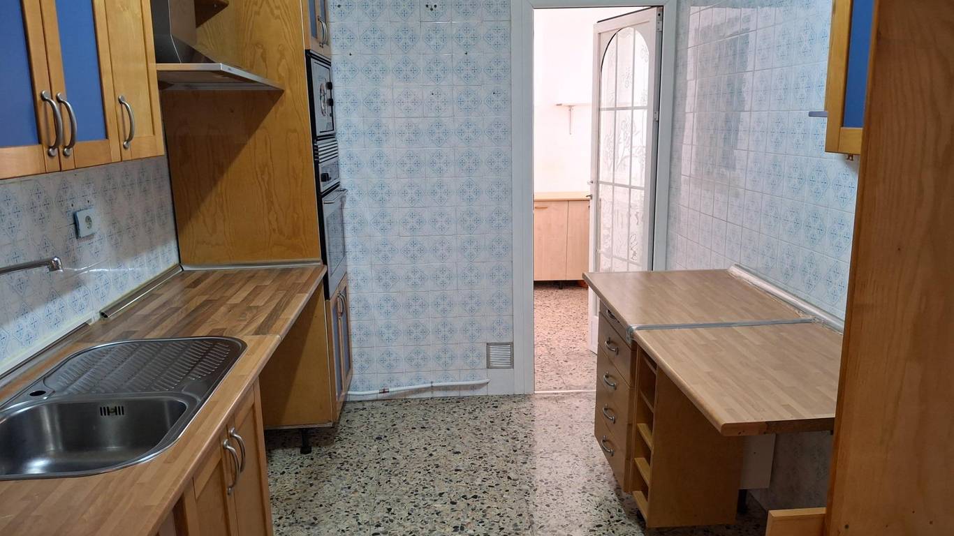 La cocina es independiente y ofrece una distribución práctica, con acceso directo a una estancia adicional que puede destinarse a zona de office, lavandería o cuarto auxiliar.