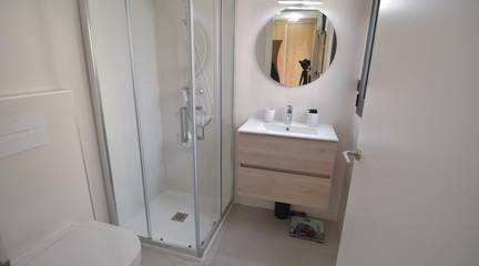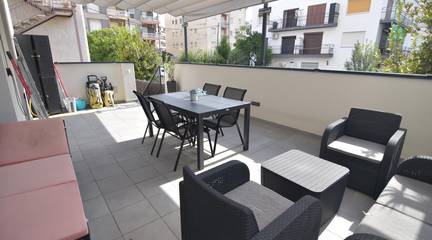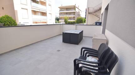 Остановки автобуса: Pl. Espanya / Poliesportiu Jaume Vilamajor - 90м; Rotonda Col·legi Mossèn Cinto / Av. França - 340м; Av. Espanya / Portugal - 360м; Itàlia / Av. Espanya - 410м; Pl. Pau Casals (CAP-Dep. Municipals de Segur) - 540м; Av. Alemanya / Av. Brasil - 560м
