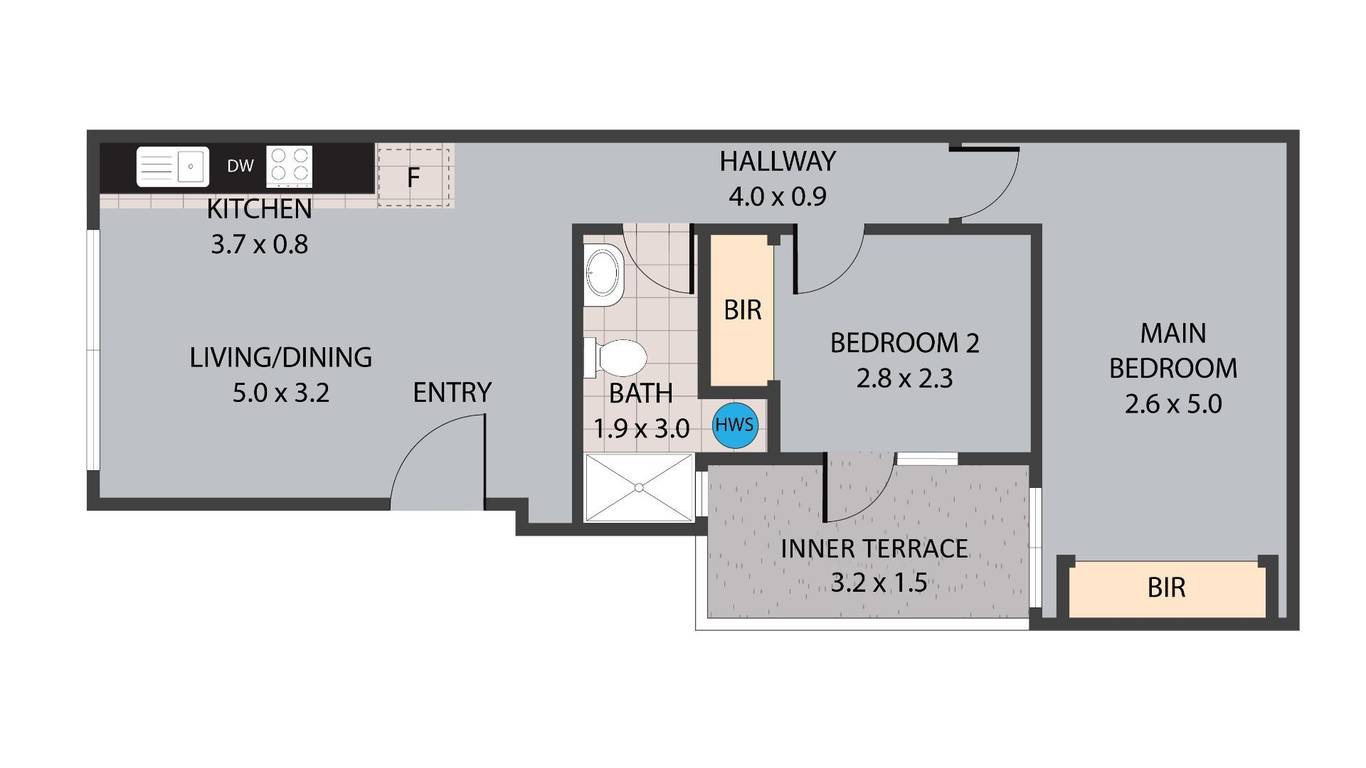 Bedrooms: 2, Bathrooms: 1