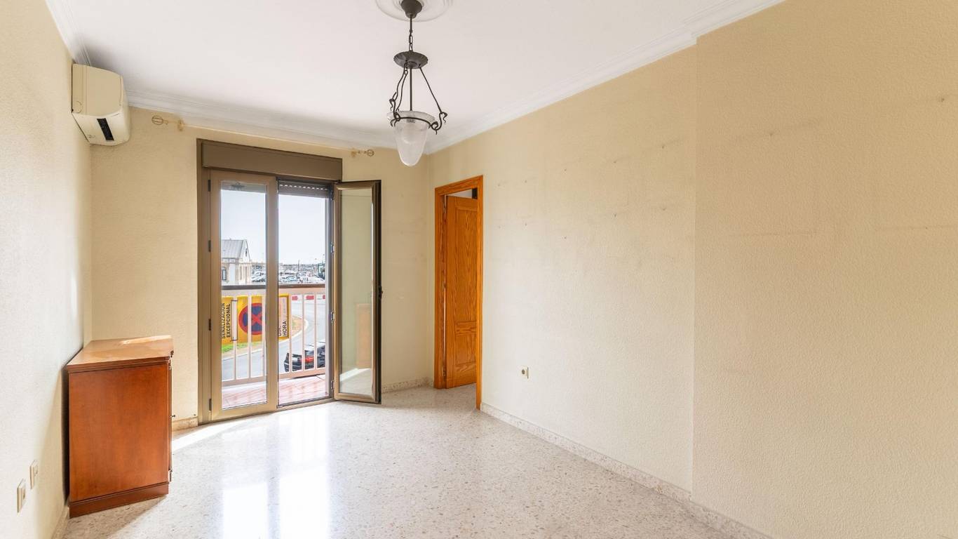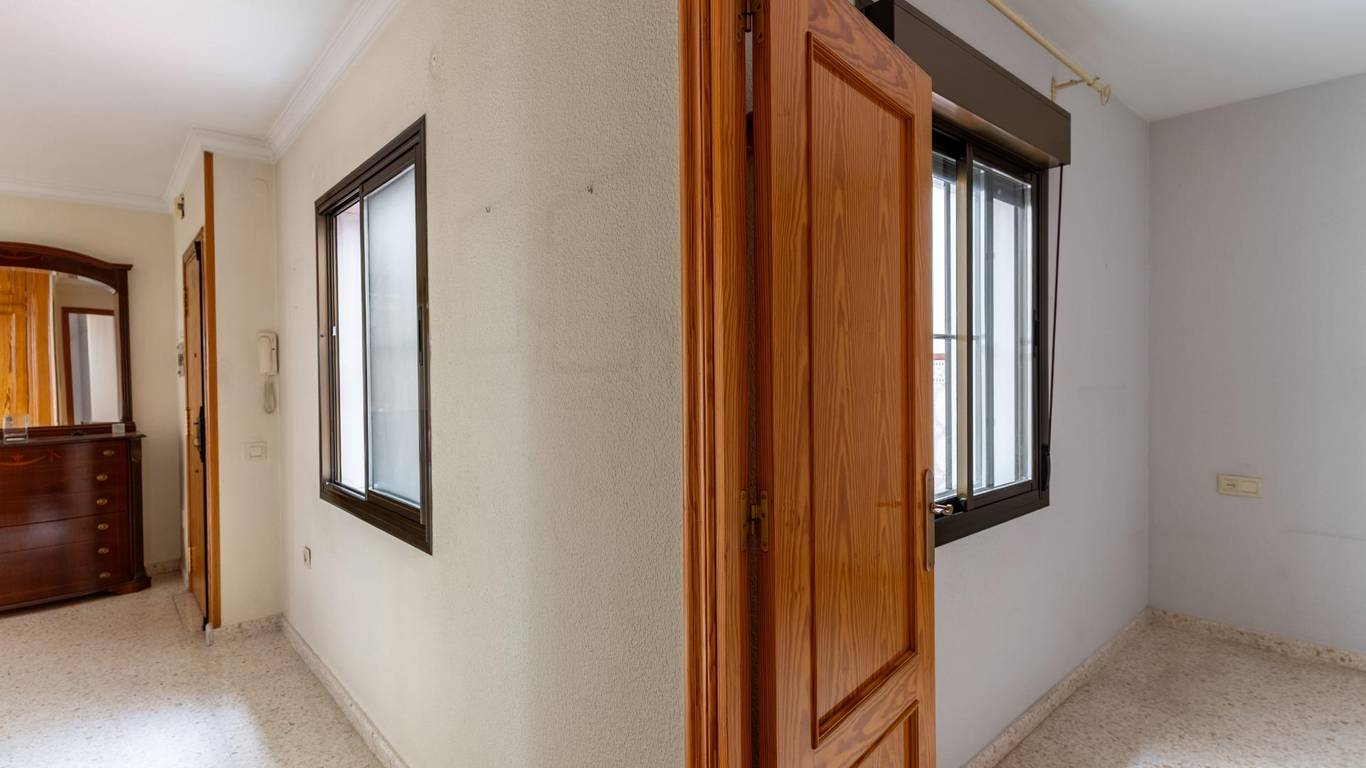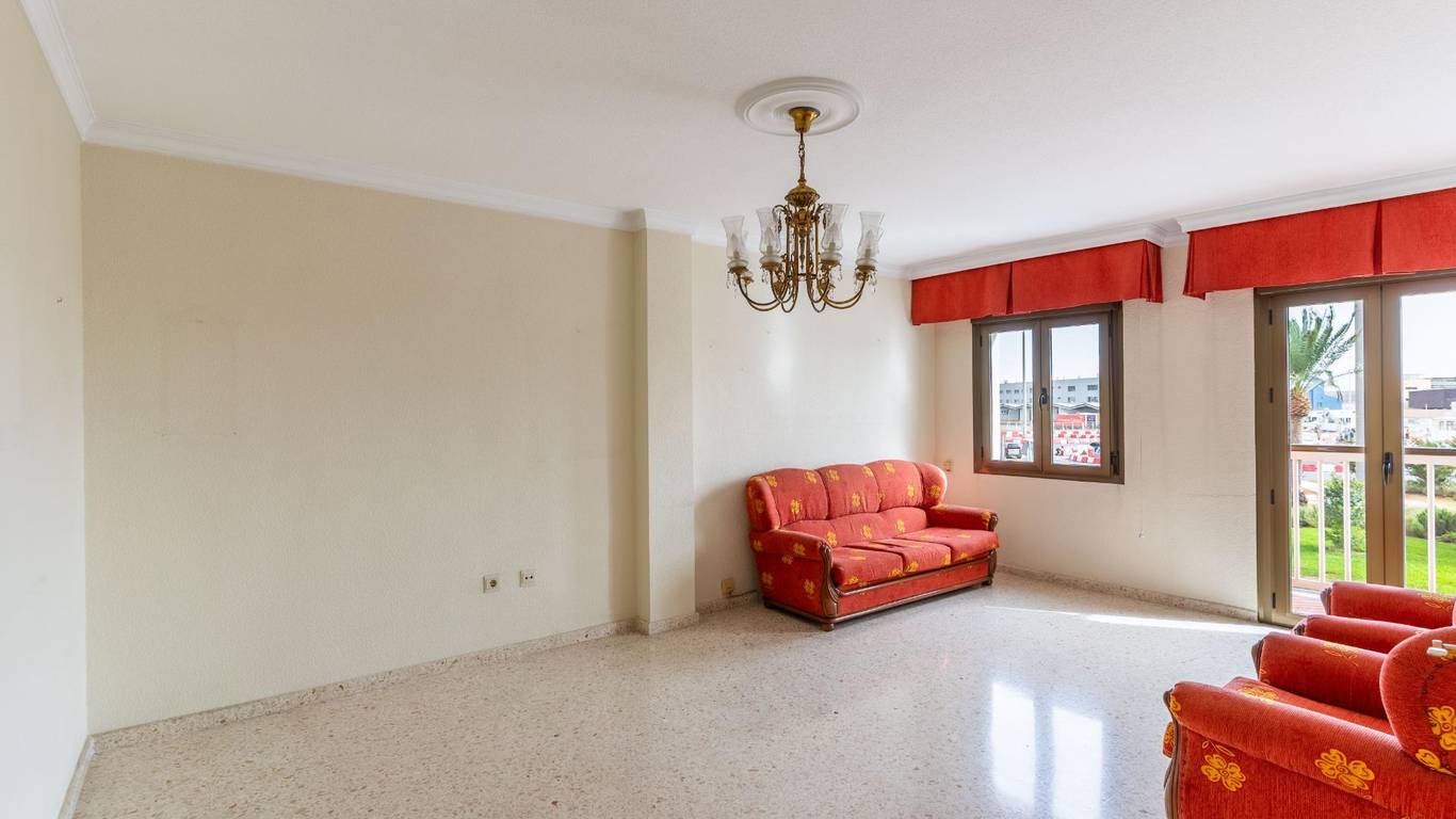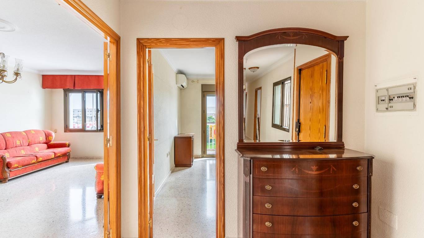 Upon entering, an elegant foyer with a built-in wood-paneled wardrobe welcomes you and defines the home's character. From there, you access a large, air-conditioned living room filled with natural light, with access to a balcony and unique views of the port of Almería, making every day a different experience.