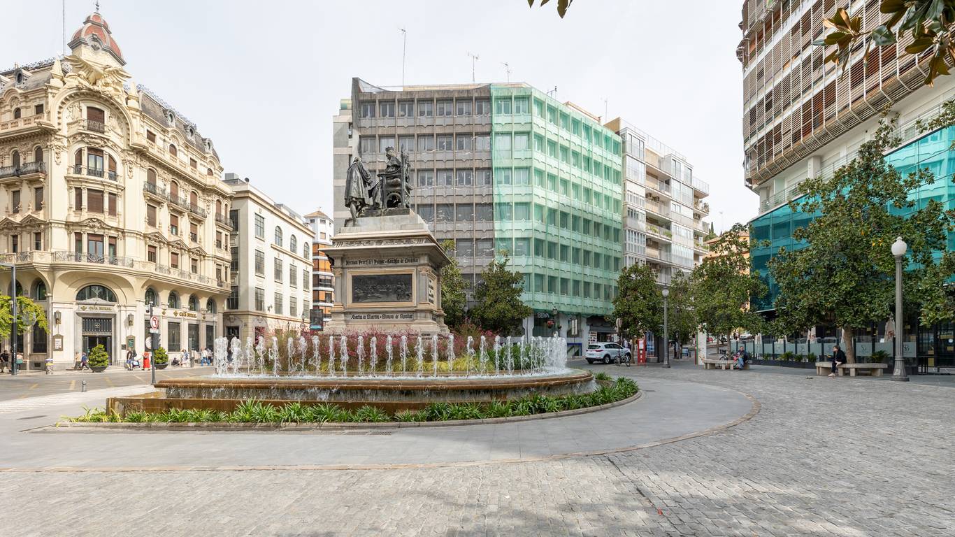 En plena Plaza Isabel la Católica, donde Reyes Católicos y Gran Vía se cruzan y la ciudad respira su ritmo más vivo, se alzan estas oficinas de 225 metros cuadrados dentro de un edificio emblemático con doble ascensor que combina carácter, elegancia y ubicación privilegiada.
