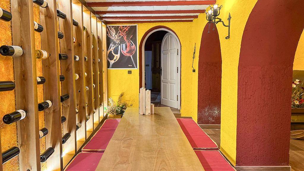 Bodega y zona de eventos con acceso independiente desde la calle lateral, ideal también como entrada comercial. Incluye bodega tradicional, cocina amplia para catas o talleres gastronómicos, sala de celebraciones y patio verde.