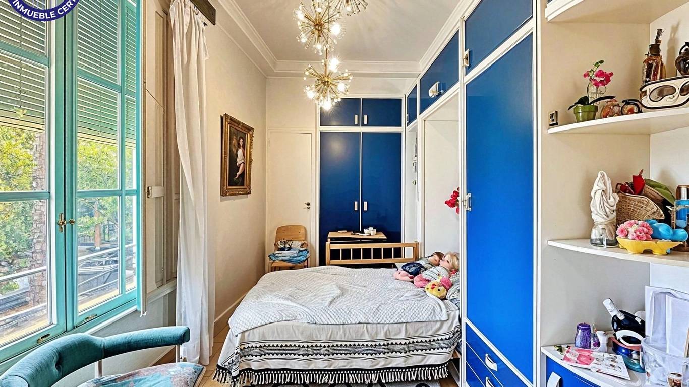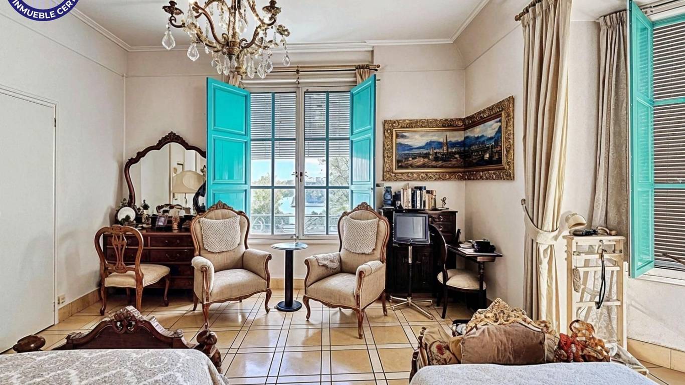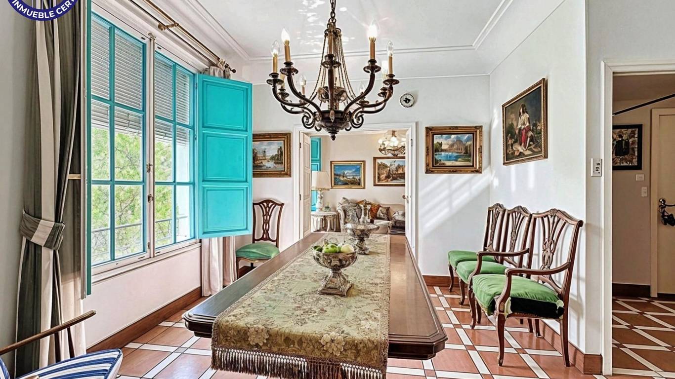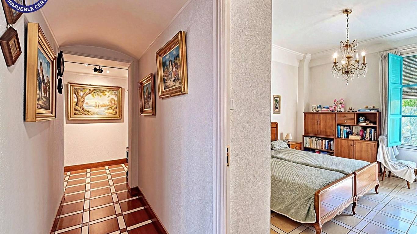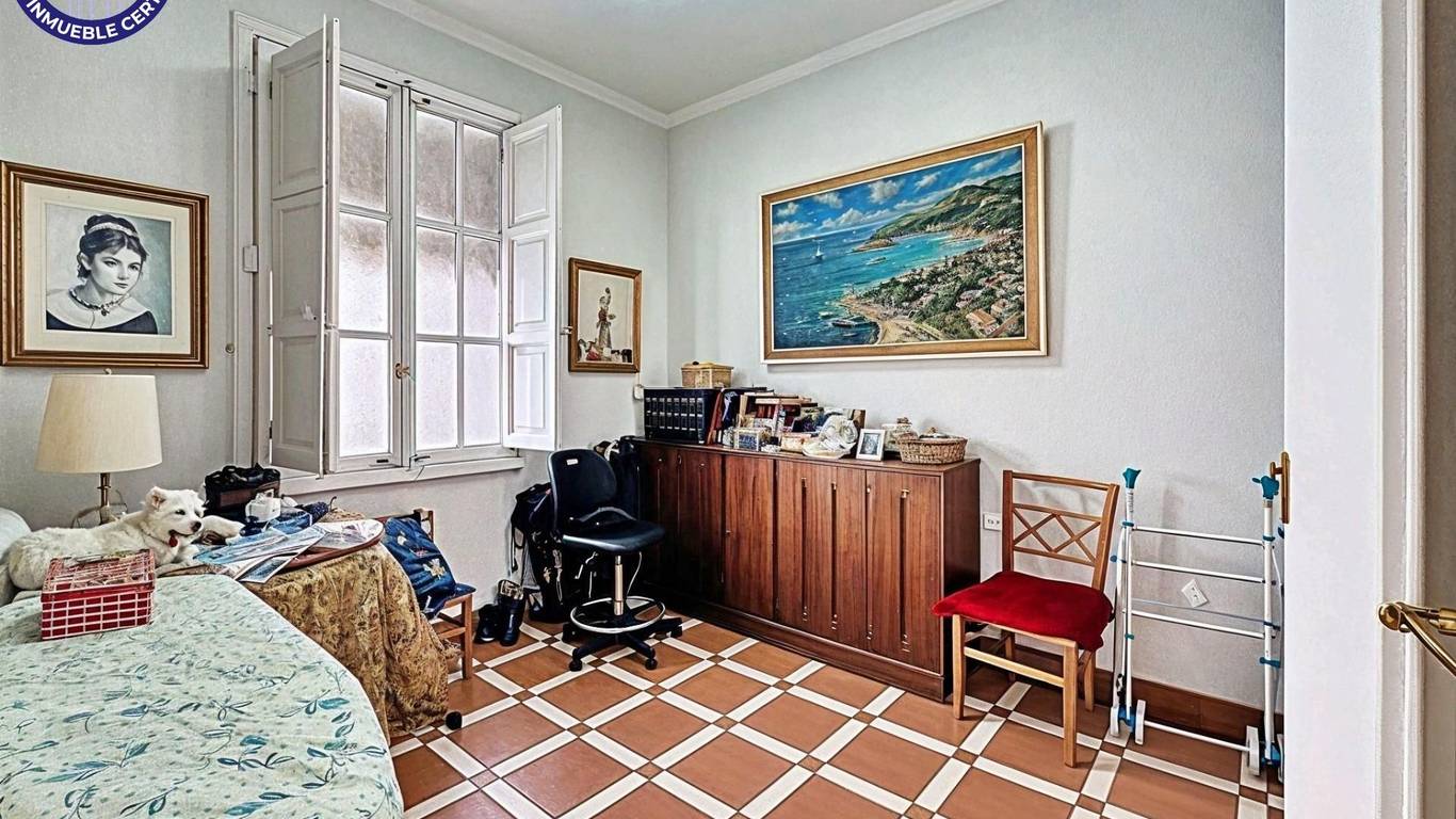 Siente la solidez y la calidad en cada detalle: la madera maciza de la carpintería interior, los techos altos que aportan amplitud visual, y los ventanales amplios con contraventanas en turquesa. La distribución es un placer para MOVERSE, ofreciendo tres habitaciones dobles que invitan al descanso profundo y dos sencillas, perfectas para un despacho o vestidor.