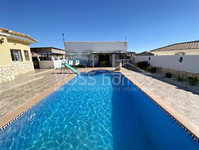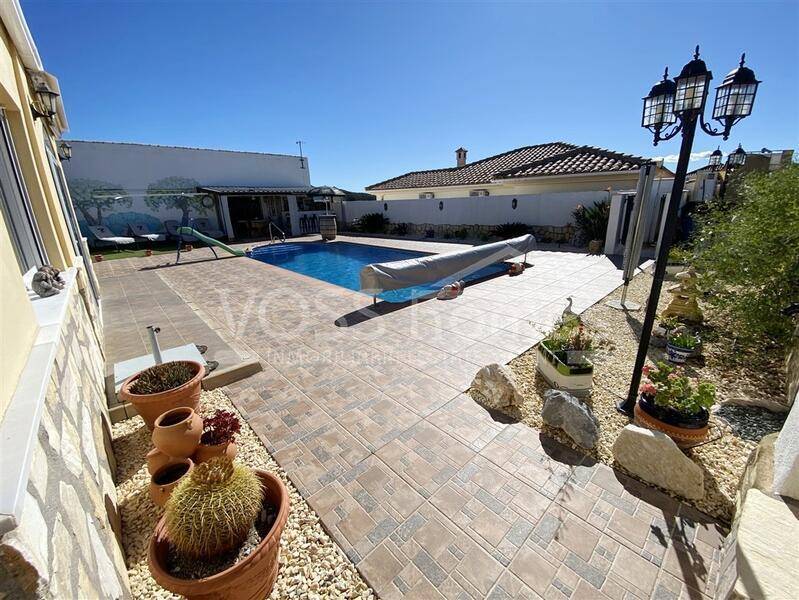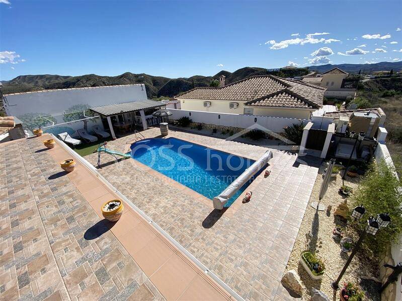 NEW & EXCLUSIVE TO VOSS HOMES - A lovingly maintained, 3 bed 2 bath Villa with heated 8m x 4m swimming pool, double garage / games room, pool bar. mains & solar electricity, H&C air con, amazing views and sun roof on a private, established garden of 618m2. In the popular area of El Cucador, Zurgena. 5 minute walk to a popular bar / restaurant. 7 mins drive to La Alfoquia village with shops, butchers, bakery, cafe bar restaurants, bank, doctors, vets, bowls club etc.