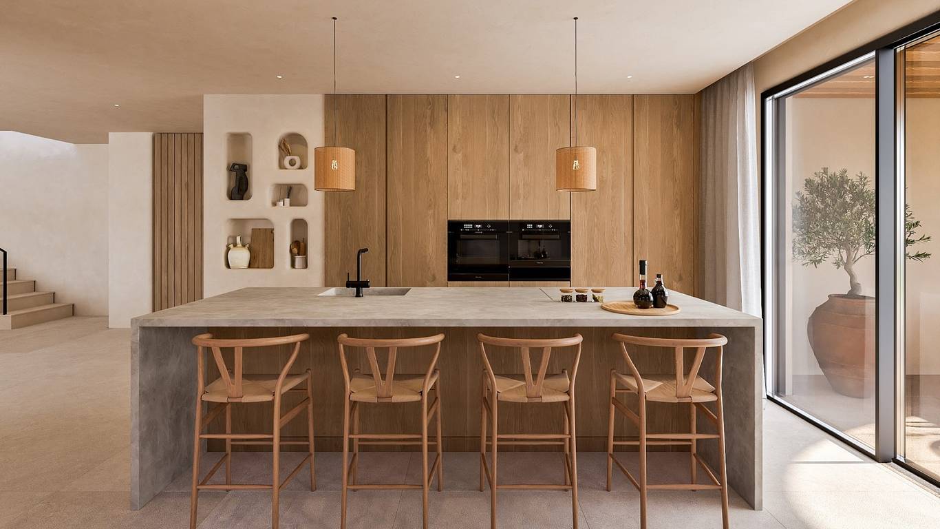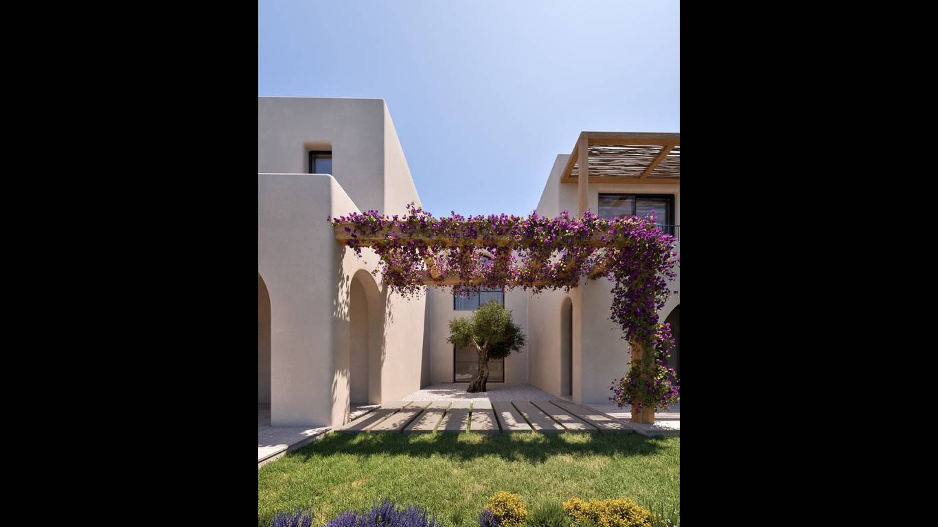 These unique homes combine contemporary architecture with Mediterranean warmth: spacious terraces, private swimming pools, stone details, wooden pergolas, arches in the nayas, and lush gardens create an atmosphere of refined serenity. Inside, open and bright spaces blend naturally with outdoor living, where the sea breeze and sunsets become part of everyday life.