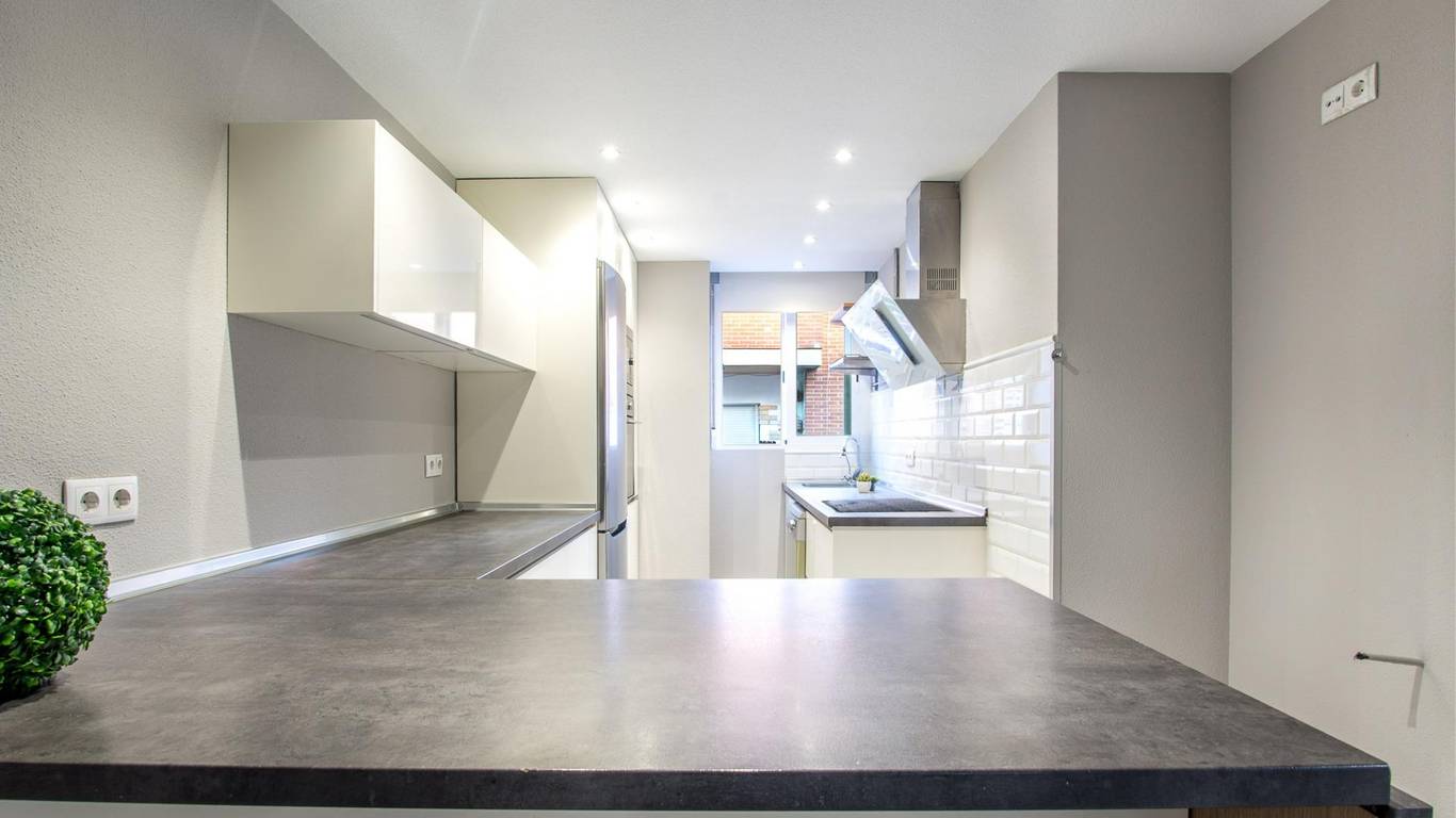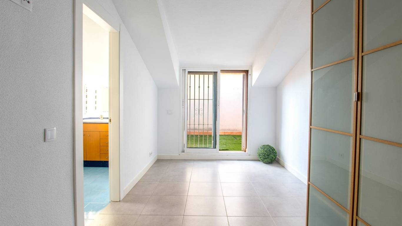 Este ático dúplex hará que sientas bajo tus pies su cerámico para guiarte en un único espacio por su luminoso salón, su equipadísima cocina plena de tecnología, su completo aseo con pila y su pequeño despacho, hasta su dormitorio con baño en suite, todo ello en planta baja.