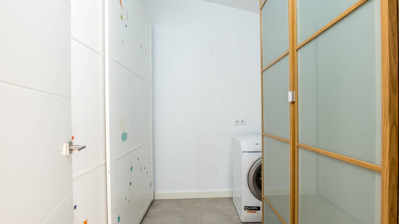 Su escalera nos repartirá por su izquierda a ese imprescindible lavadero independiente, para luego empujarnos por tres dormitorios y dos baños más -uno de ellos en suite- hasta la terraza que se asoma a su piscina comunitaria con pista de tenis y parque infantil.