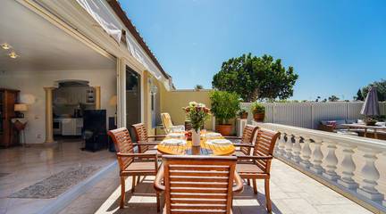 An exceptional opportunity to acquire a frontline residence in the highly sought-after area of Pasito Blanco. This elegant property, distributed on a single floor, offers three bedrooms and two bathrooms, with an open-plan design where the kitchen and living room blend seamlessly, creating a warm and harmonious atmosphere with direct access to a private terrace on the ground floor. From there, a staircase leads to the rooftop terrace, the ideal spot to enjoy sunsets over the sea and the marine ambiance.