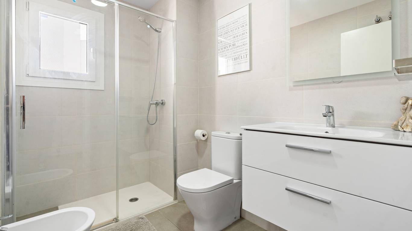 The bathrooms, equipped with Roca furniture and soft-close sanitary fittings, stand out for their contemporary design and relaxing atmosphere.