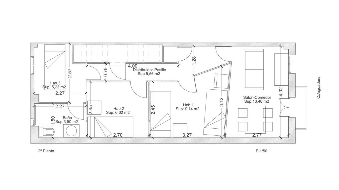 Su distribución actual esta compuesta de un bajo de 52 m2 construidos más tres plantas de 53 m2 construidos cada una. La finca es luminosa y con buena orientación la fachada es sureste y la parte trasera de la vivienda es oeste. La planta baja se puede destinar a despacho profesional, negocio, garaje, formar parte de la vivienda, etc. El resto de las plantas se pueden dedicar a crear una bonita vivienda particular o pisos independientes. La estructura del edificio está en correcto estado, tanto las plantas como el techo están provistos de vigas de hormigón al igual que la cubierta que está en buen estado.