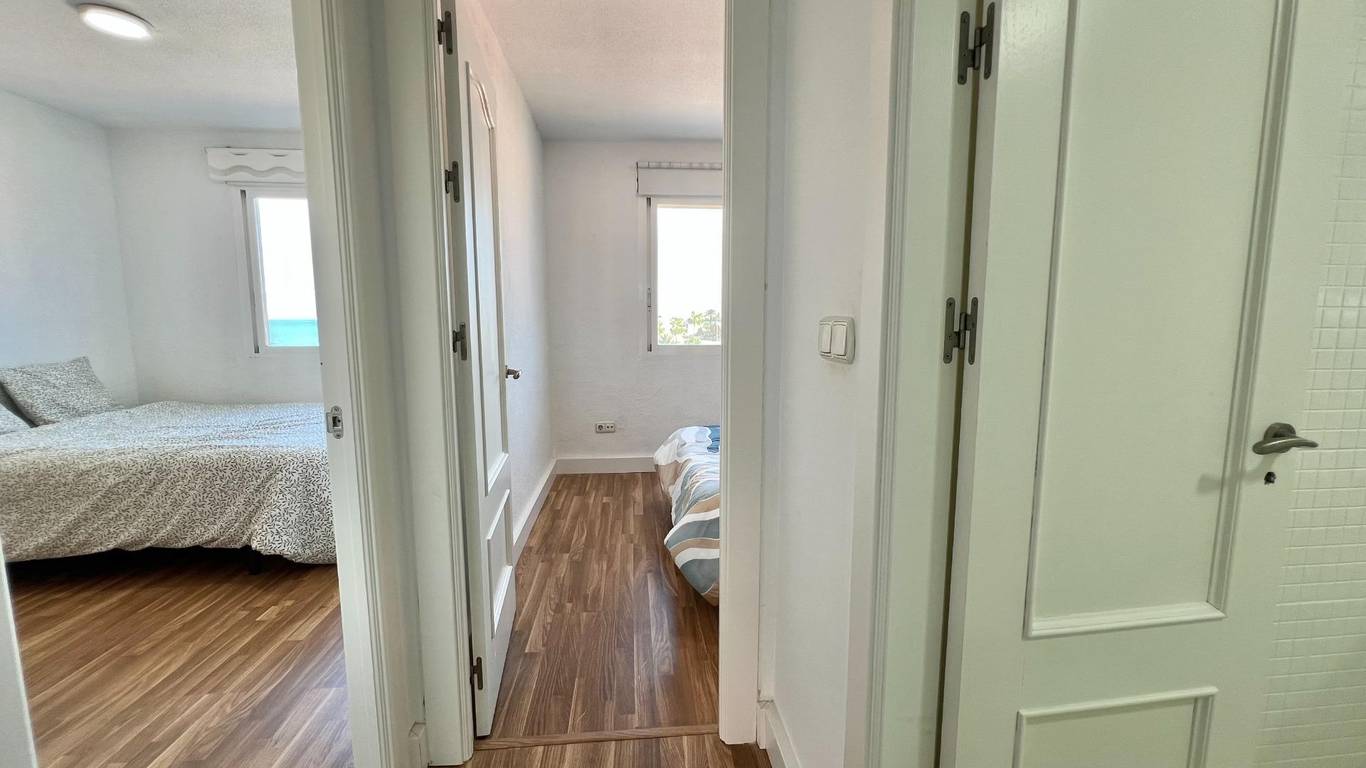 Dos dormitorios espaciosos y luminosos, listo para entrar a vivir o disfrutar desde el primer momento de tus vacaciones. La decoración es actual y funcional. Un balcón ideal para desayunar con la brisa marina o cenar bajo las estrellas. Parking privado.
