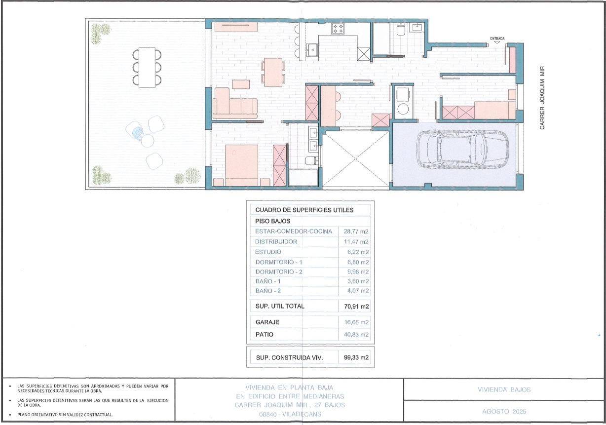 Presentamos esta excepcional planta baja ubicada en la tranquila y codiciada zona de La Roureda, en Viladecans. Con un precio atractivo de 380.000 euros y una superficie construida de 99.33 m, este inmueble es ideal para quienes buscan comodidad y modernidad. Se trata de una obra nueva que ofrece un diseño contemporáneo con orientación norte-sur, lo que garantiza luz natural durante todo el día.