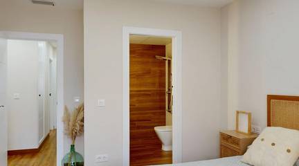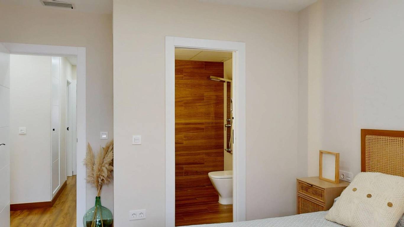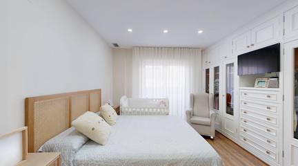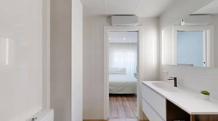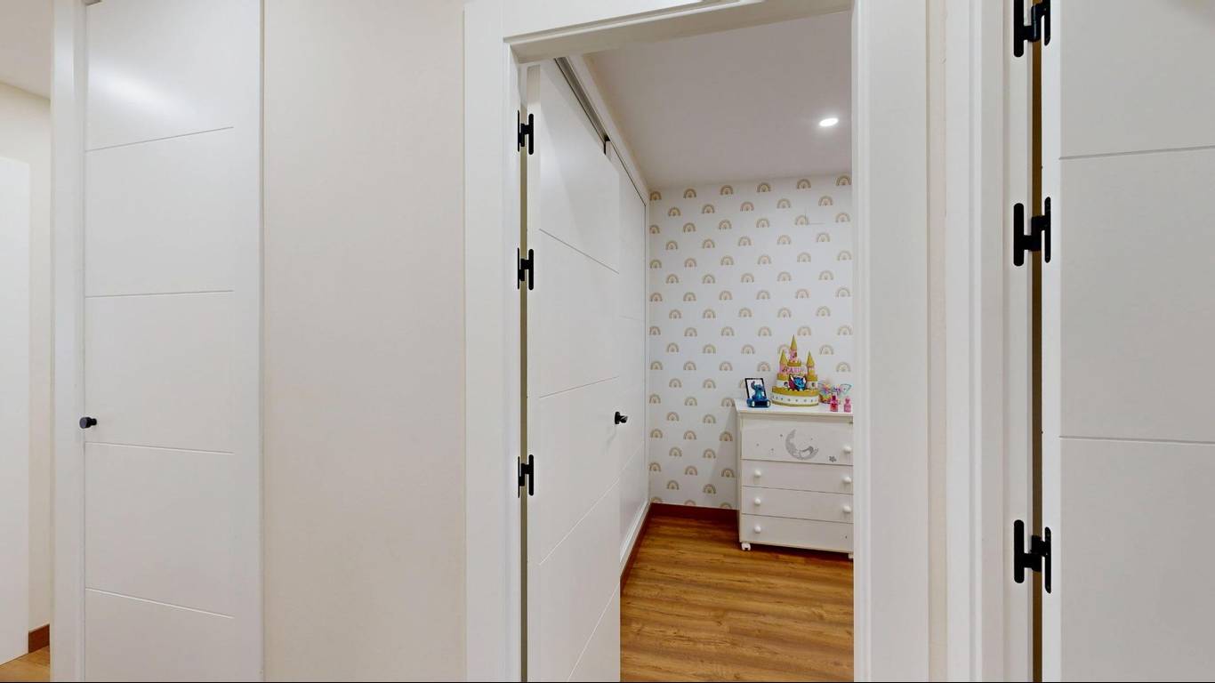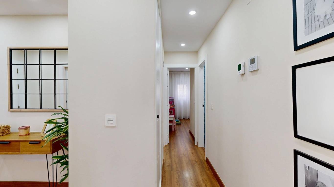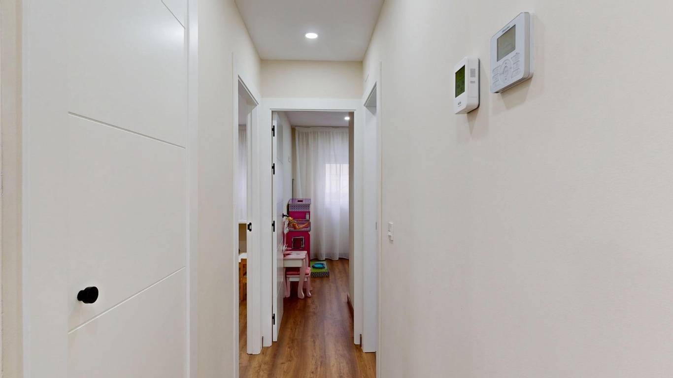 CALIDADES :Todas las ventanas de la vivienda son de climalit oscilobatientes y con mosquiteras, suelos de tarima, paredes lisas, puertas lacadas en blanco con manillas o manivelas en negro y aire acondicionado por conductos en todas las estancias e iluminación led